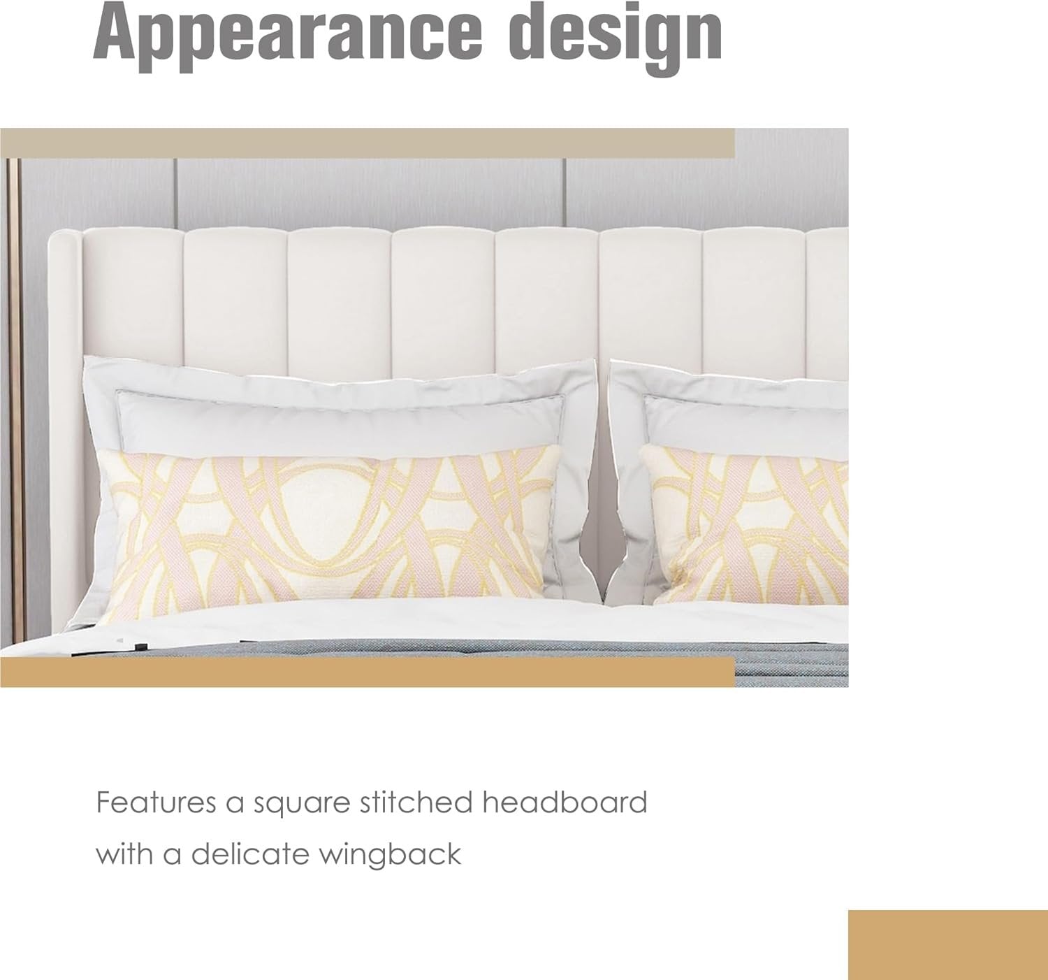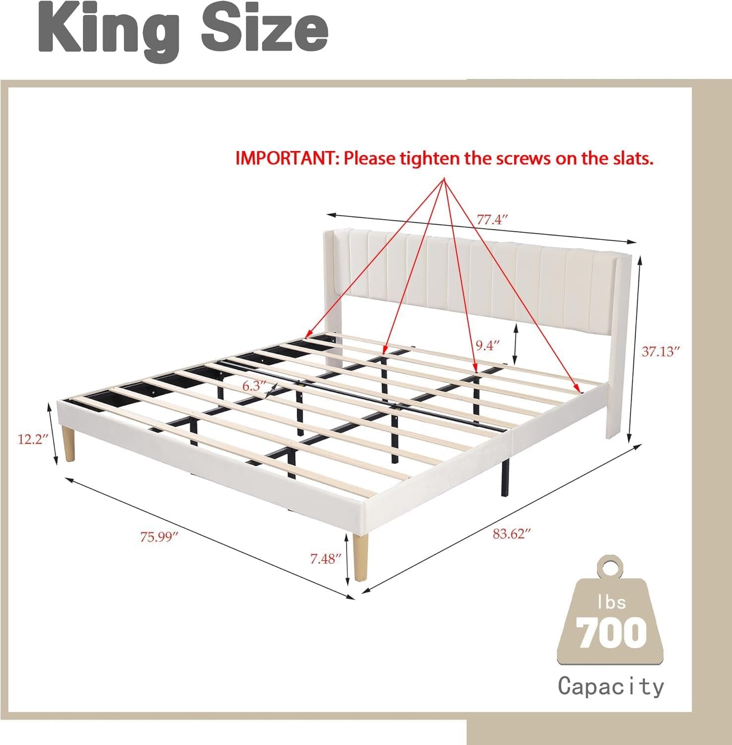 AGARTT Upholstered Platform Bed Frame King Size with Headboard and Footboard/Wooden Slats Support/No Box Spring Needed/Easy Assembly, Beige Velvet