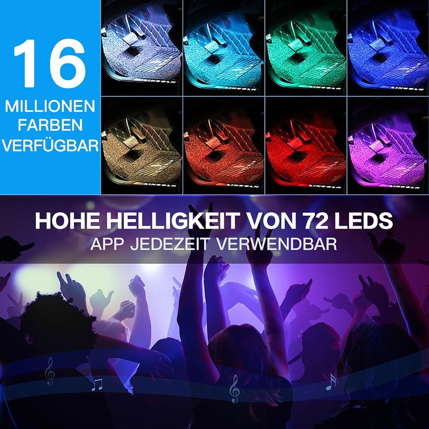 48 LED Lights: AIGUOZER provides a total of 4 interior car led strip lights (12 LEDs/each, length: 22 cm). 48 high brightness LEDs, make your car brighter and more spacious, the whole car is full of romantic neon lights 16 million colors to choose from: our car ambient lights come in a variety of different colors for you to choose from, you can create your own unique color, car interior lighting updates the car and add some personality to the vehicle The light moves with sound: LED car interior built-in high-sensitivity microphone, one-click music mode switch, the car lights flash and change with the rhythm of music, making you feel like you are sitting in a music scene LED car interior with APP: car ambient lights are controlled by APP, you don't have to worry about losing the remote control and not being able to use the lights. With our app you can set the color, color change type, brightness and speed yourself Wide Application Our LED car lights are USB powered and work at 12V. Car interior LED strip can be widely used in car, car floor lighting, car ambient lighting, car mood light, and widely used in various parties, such as birthday, Christmas, Easter, Halloween