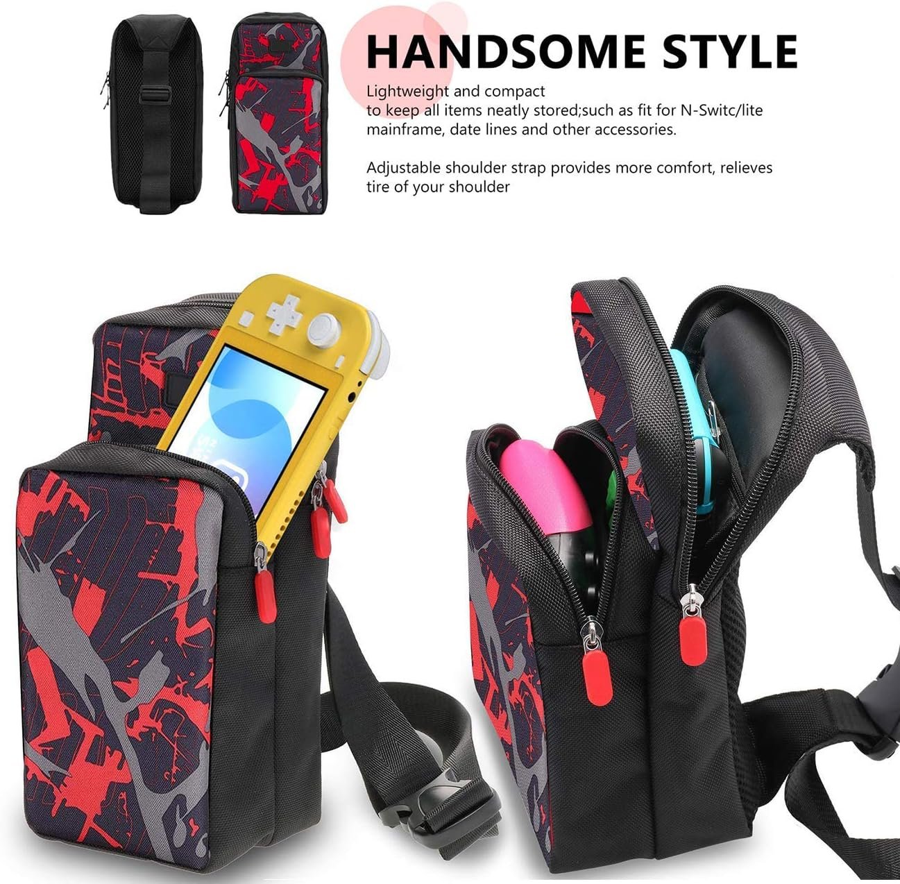 【EXCELLENT ACCESSORY BAG】-Designed with internal pocket, this shoulder back pack is an excellent bag, storing items and keeping everything organized, meanwhile, preventing the stuffs in bag from crushing. N-switch game accessory bag fits for N-switch/lite mainframe, no rummage any more to find something. 【LIGHTWEIGHT CARRY BAG】-Made of light weight material,this game bag will not be a heavy burden.With back breathable mesh design,it’s good for air circulation and heat dissipation,reducing discomfort caused by back sweat and keeping you dry all times. 【HUMANIZE-DESIGNED BACK PACK】-Unlike other shoulder bags only caring about appearance,this sling bag gives consideration to both look and comfort.The shoulder strap of the cross-body backpack can be adjusted as you like, relieving tire of your shoulders. Padded back ensures your comfort for long time carrying. 【PRACTICAL BAG】-This portable backpack for N-switch can be carried either in front or back to protect your personal belongings against bumps, scrapes, and scratches. Made of eco-friendly material, nontoxic, lightweight, durable, and comfortable to wear. 【100%SATISFACTION GUARANTEE】 -We provides 12 months quality guarantee for every customer, life-long technical support. Shop with confidence!