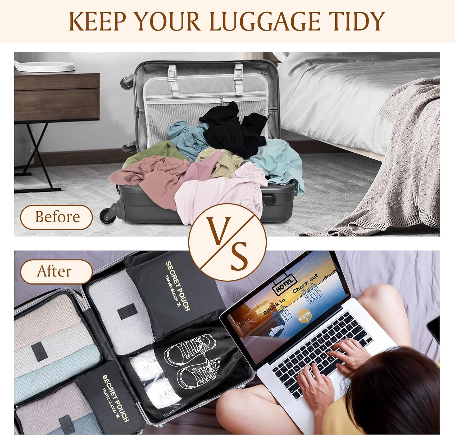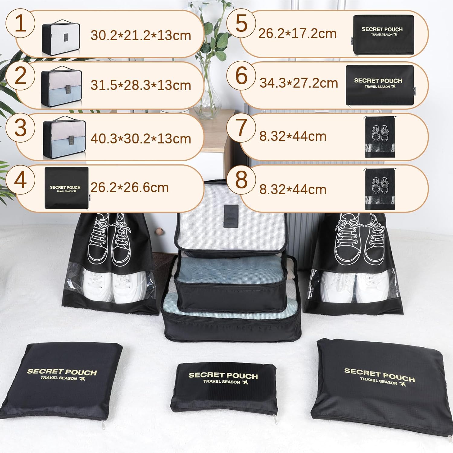 AiQInu 8 Pieces Organizer Suitcase Set, Packing Cubes, Travel Organizer, Sacks Suitcase