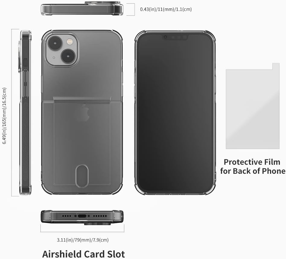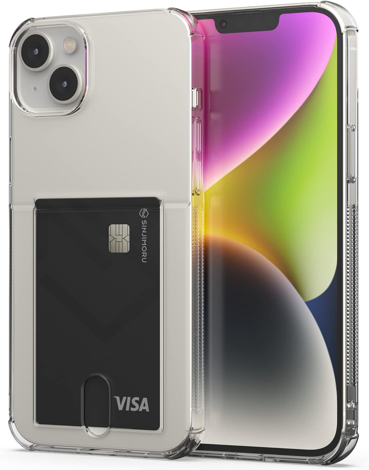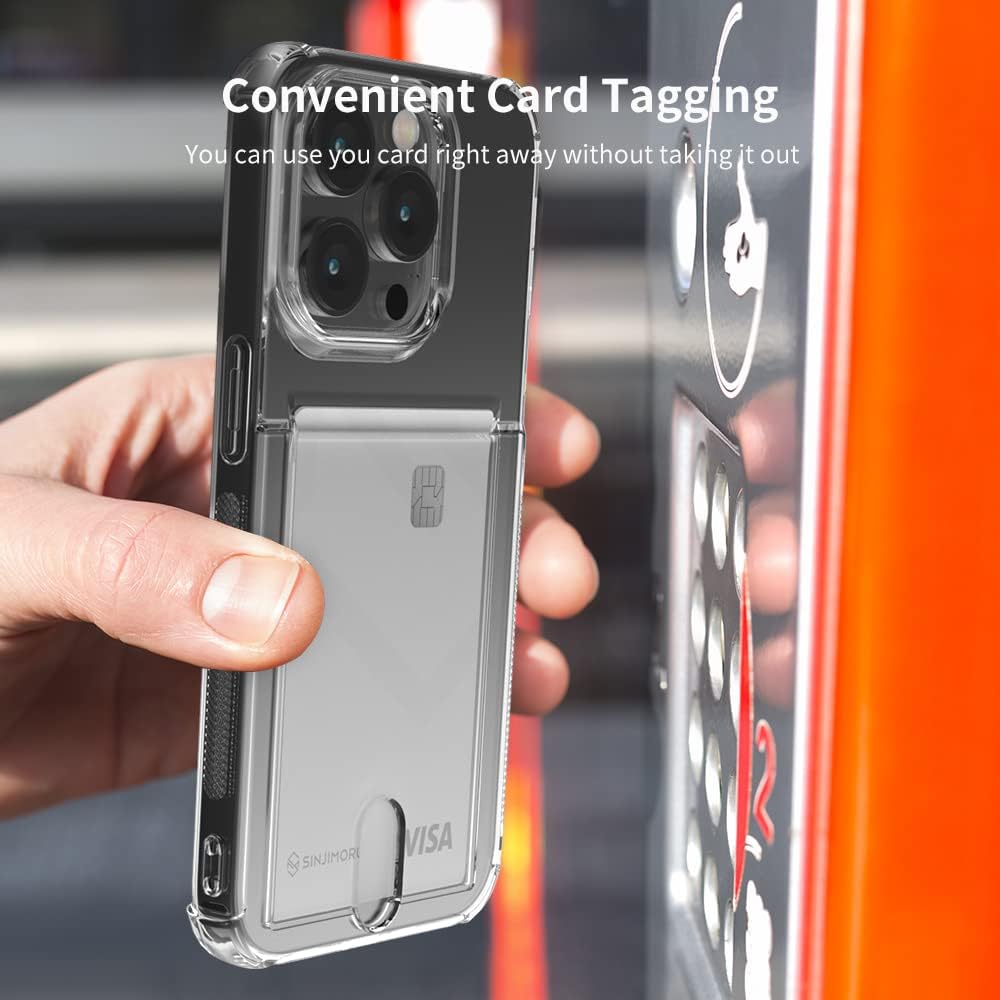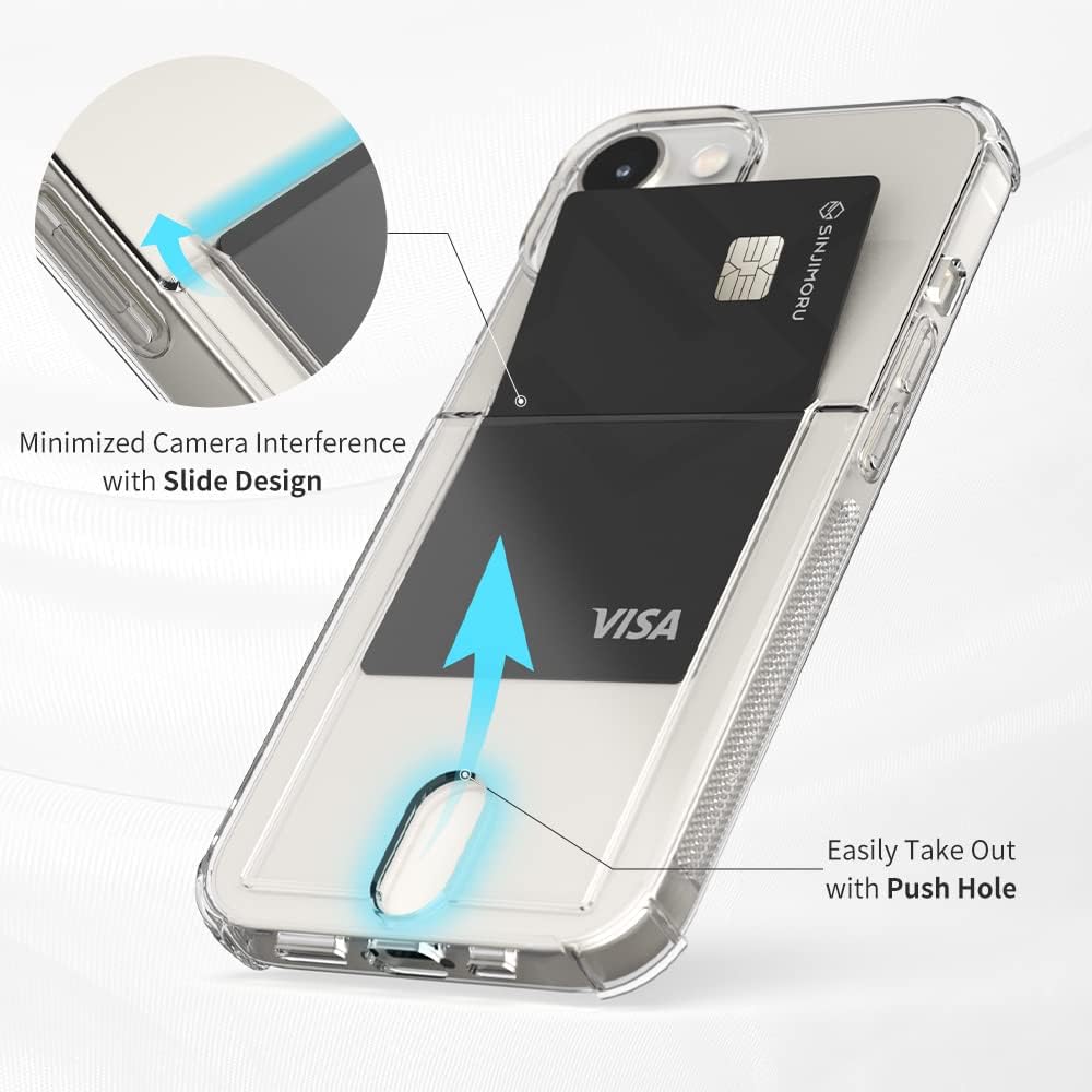Air-Tip TPU Phone Case with Card Holder, Sinjimoru Slim Fit Clear Phone Wallet Case for Apple iPhone 12 13 14 Cell Phone Cover as Credit ID Card Sleeves. Air-Shield with Card Slot iPhone 14 Plus