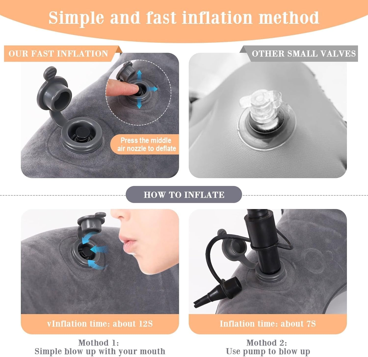 Quality Flocked PVC Material: Our inflatable donuts pillow are made from premium materials, ensuring durability and long-lasting comfort; The airtight valve ensures that the cushion stays inflated, while the breathable cover allows for ventilation and cooling Multifunctional Hemorrhoid Pillows for sitting: Our donut cushion is a must-have for hemorrhoid relief, lower back support, tailbone, backside, and butt pain, postpartum; Our ergonomic pillow can take pressure off of the perineum, and relieve pelvic pain Wide Application: Our donut pillow for hemorrhoids is suitable for most chairs and seats, including office chairs, wheelchair, airplane, bus, train, toilet, car seat and outdoor benches; Hemorrhoid cushion can bring relaxation to people who need to sit for a long time Easy to Inflate/ Deflate/ Adjust: Our Donut Pillow for bed sores equipped with upgraded quick valve, You can inflate it using your mouth or a pump in a few minutes; You can playing with the amount of inflation to find your desired level of firmness and comfor Thoughtful Gift: Our inflatable pillow is perfect for people with special needs after surgery, pregnant women, elderly and children who often find the seat uncomfortable, and office workers, Butt pillow is perfect choice for birthday gifts, Christmas gifts
