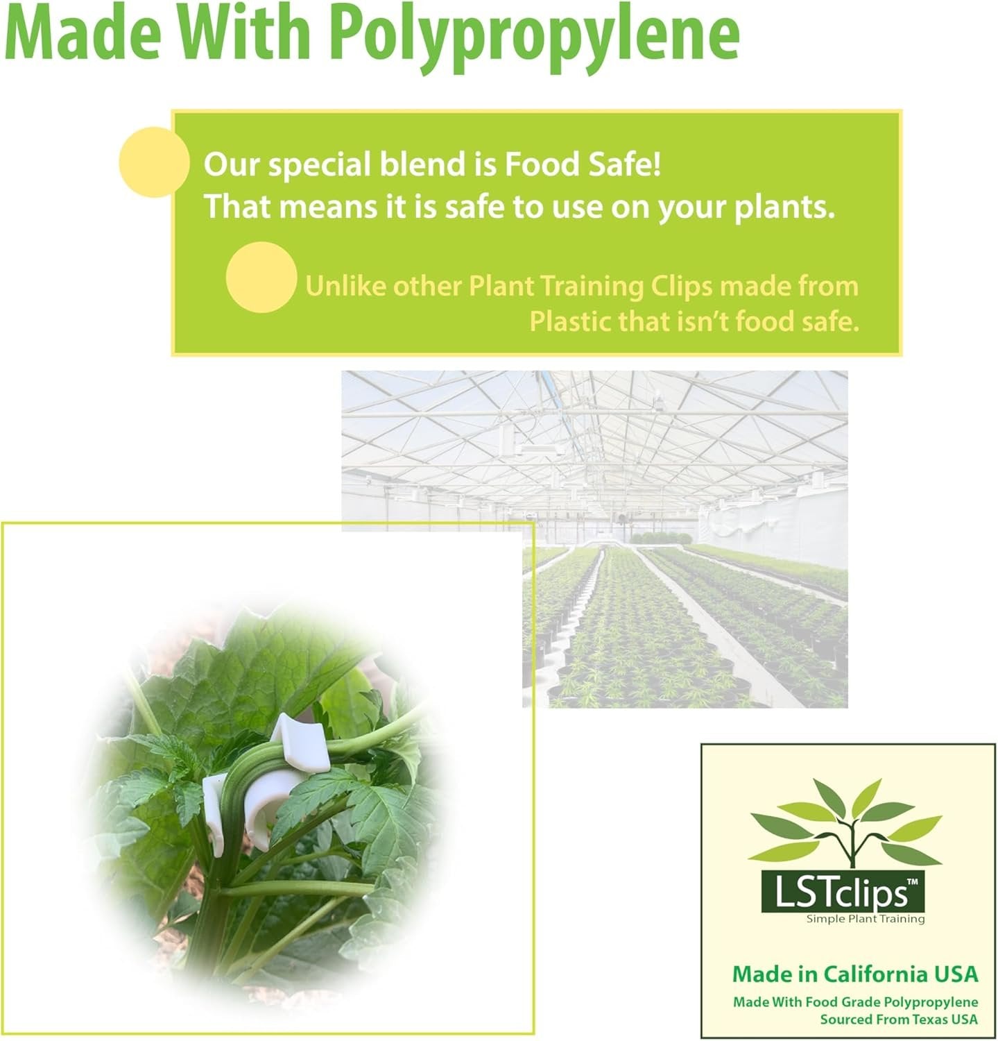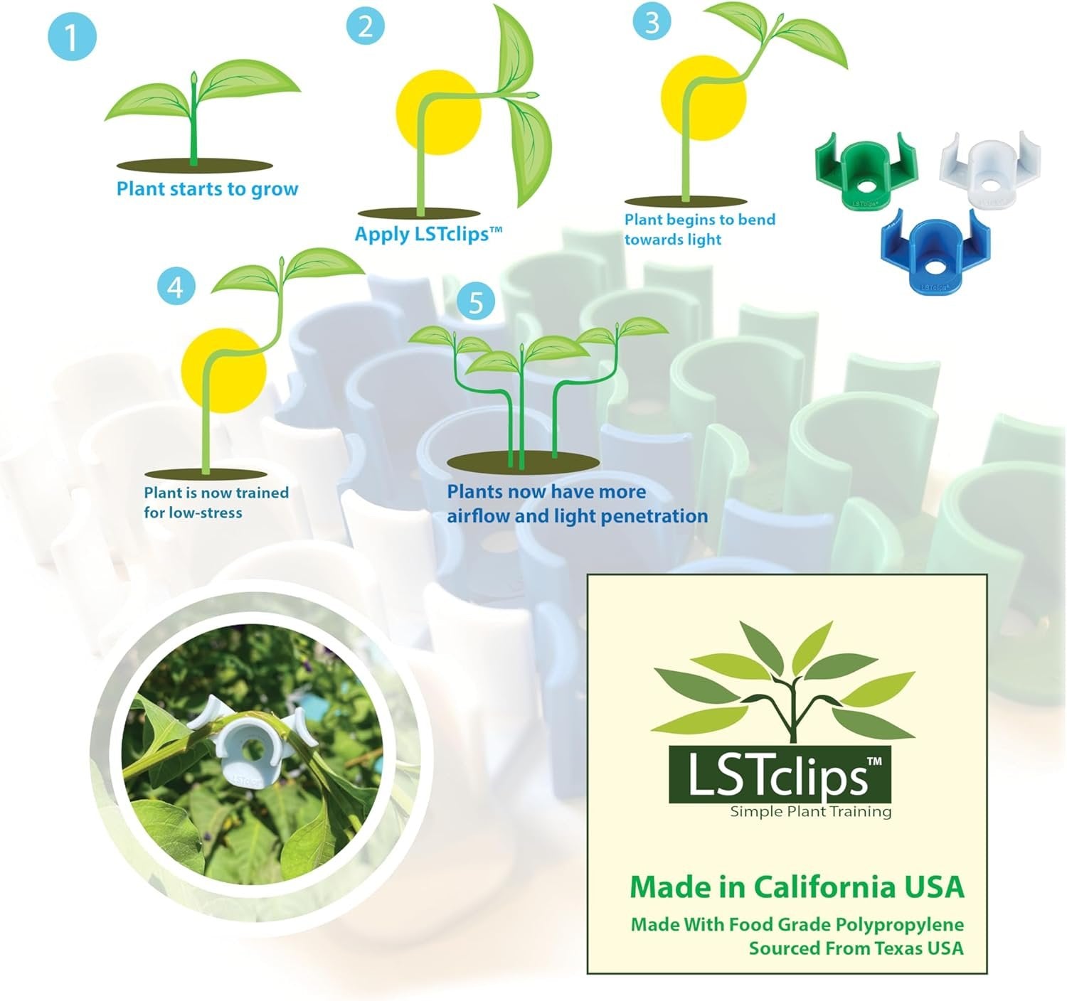 USA-made plant training clips designed specifically for plant training and growing supplies, including low stress training clips and plant support accessories. Lst Clips, Made in California USA California sourced lst plant training clips made with durable material, perfect for herb and other cultivating plants. Use in greenhouses, grow tents and outdoors. Ideal for optimizing plant growth. Medium white pack of lst clips for plants, ideal for using as plant benders to shape and train your plants for optimal growth. Ideal for allowing more light and air into the plant. AirTech Home Automation LSTclips provide the perfect plant stem support with their innovative design, ensuring healthy and strong plants. Our plant clips are used by an array of growers. These quality lst training clips for plants are essential grow tent accessories for any grower looking to maximize their yields. Makes a great gift. Lst clips work great for training various plants. Invest in the well-being of your plants with our premium Lst clips. Designed for ease of use and durability, these clips are essential tools for every gardener and cultivator. Elevate your plant care routine and achieve remarkable results with our Plant Clips. Order now and experience the difference!
