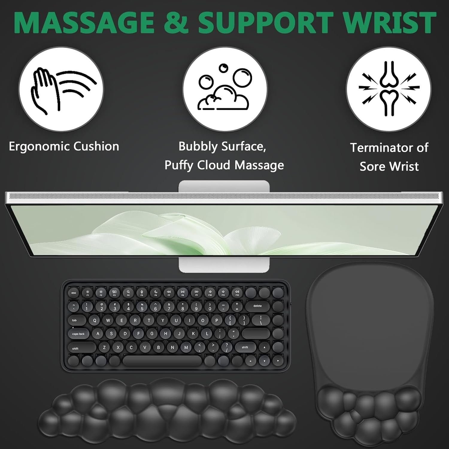 AKIT Black Ergonomic Mouse Pad with Wrist Rest for Computer Keyboard, Bubble Massage Cloud Wrist Rest Keyboard Pad and Cute Mouse Pad with Wrist Support, Soft Gel Gaming Mouse Pads for Desk Office