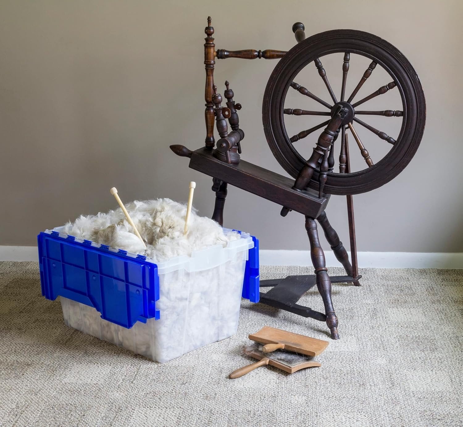 Akro-Mils 66486 12-Gallon Plastic Stackable Storage Keepbox Tote Container with Attached Hinged Lid, 21-1/2-Inch x 15-Inch x 12-1/2-Inch, Clear/Blue
