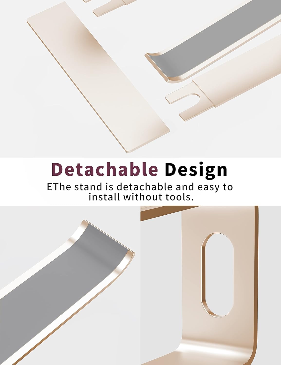 ALASHI Laptop Stand for Desk, Aluminum Computer Riser, Ergonomic Notebook Holder, Detachable Metal Laptops Elevator, PC Cooling Mount Support 10 to 15.6 Inches Notebook, Gold
