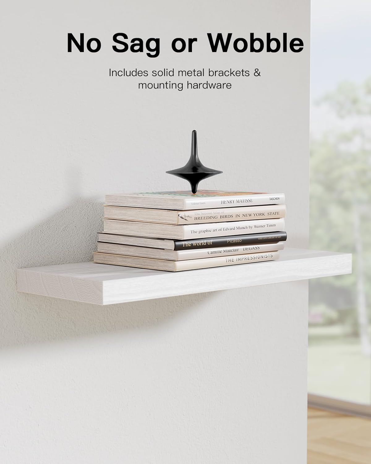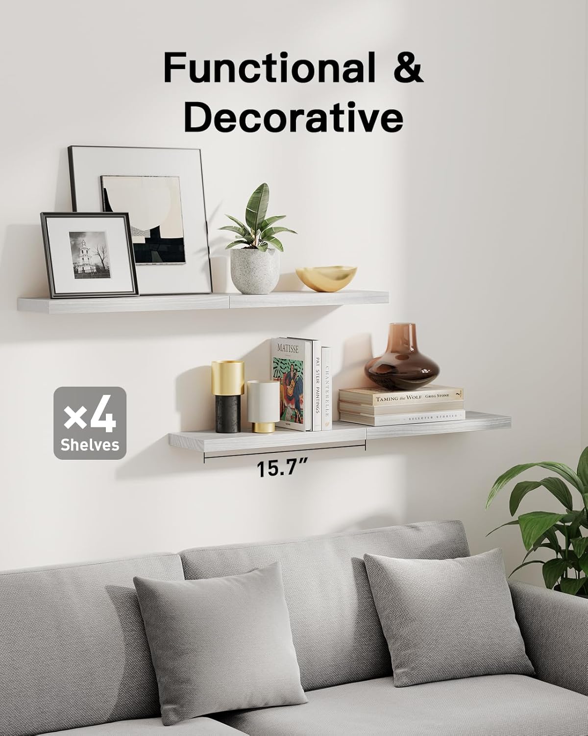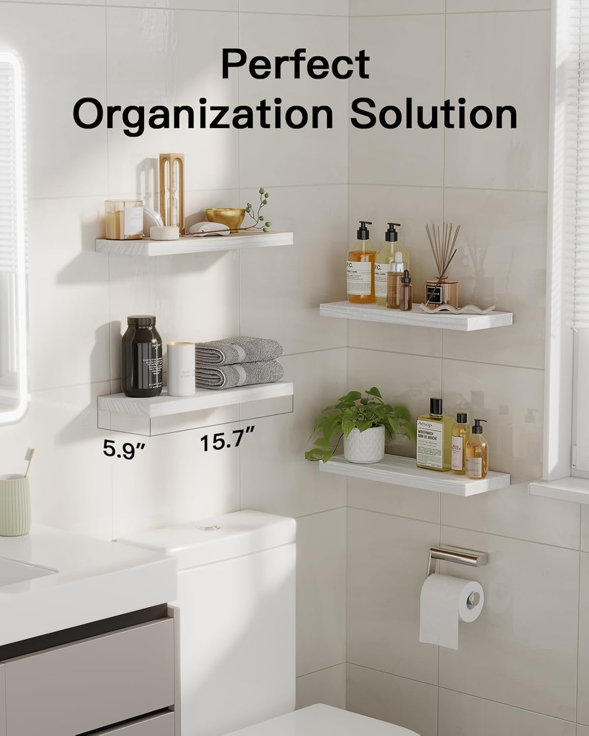 AMADA HOMEFURNISHING Floating Shelves, Paulownia Wood Wall Shelves for Bathroom/Living Room/Bedroom/Kitchen/Home Office, Natural Wood Floating Shelf for Home Storage & Organization, Set of 4, AMFS40W