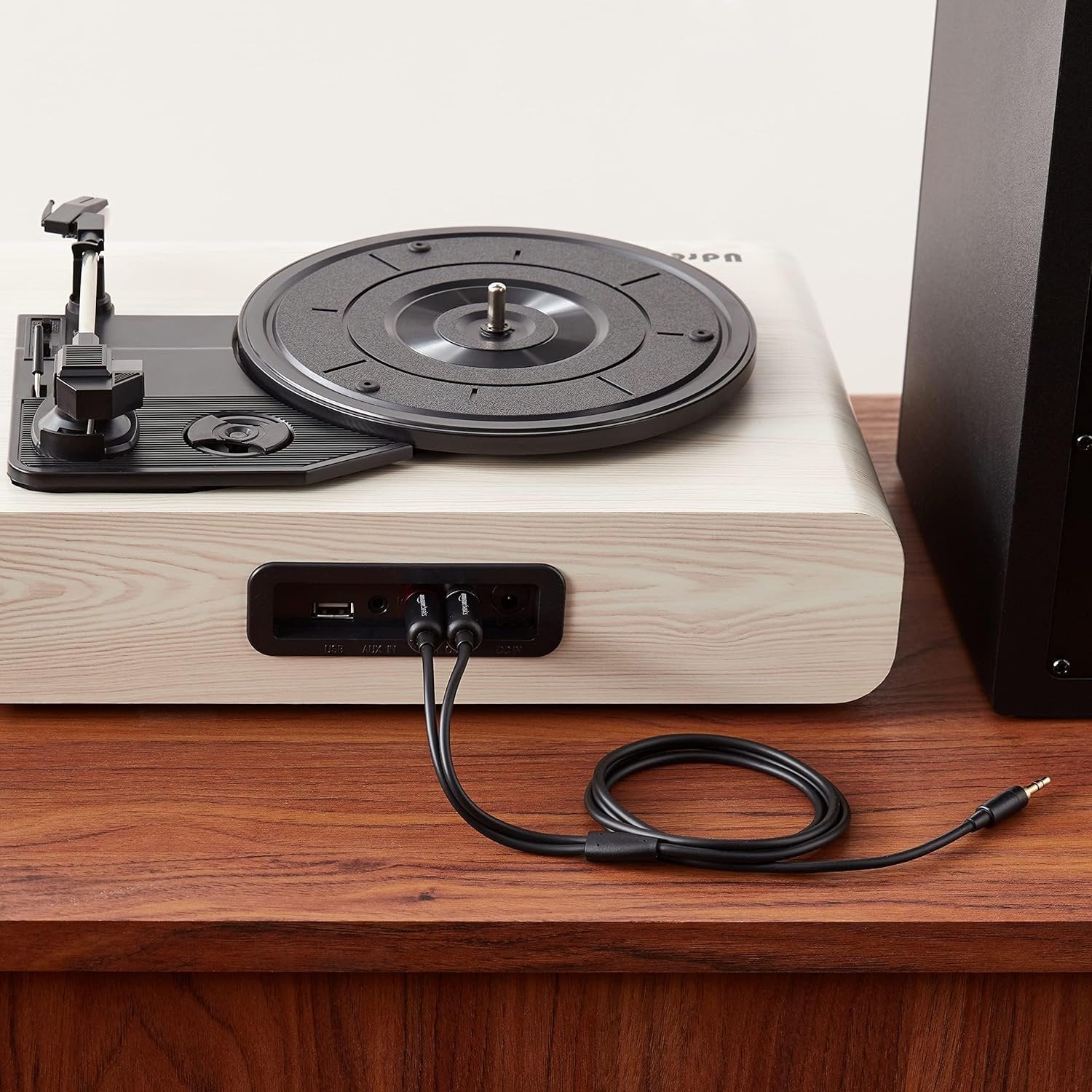 IN THE BOX: (1) 4 foot 3.5mm to 2-Male RCA adapter cables EASILY CONNECT DEVICES: Adapter cable connects a smartphone, tablet, or MP3 player to a speaker, stereo receiver, or other RCA-enabled device 3.5MM TO 2X RCA CONNECTORS: 3.5mm Male connector on one end and two Male RCA connectors on the other end STANDARD AUX JACK: Works with left and right audio input and devices with a standard 3.5mm auxiliary jack (typically used for headphones or ear buds) CLEAN & CLEAR SIGNAL: Dual-shielding, polished metal connectors and a corrosion-resistant gold-plated 3.5mm connector for pure, clear audio and minimal signal loss