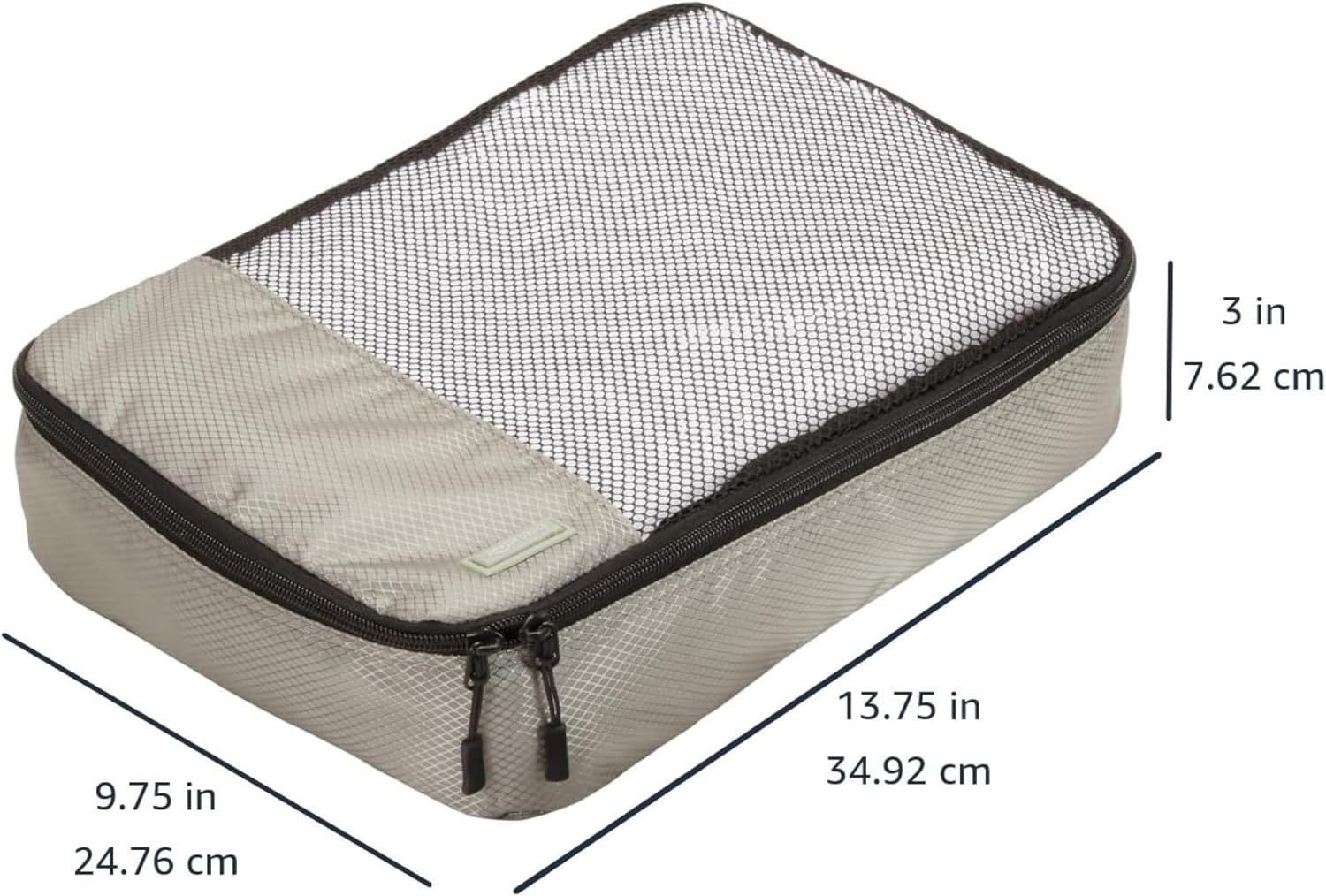 Amazon Basics Medium Packing Cubes for Travel, Packing Organizers, 4-Piece-Set With Double Zipper Pulls and Mesh Top Panel, 100% Durable Polyester, Gray, 35 x 25 x 8cm