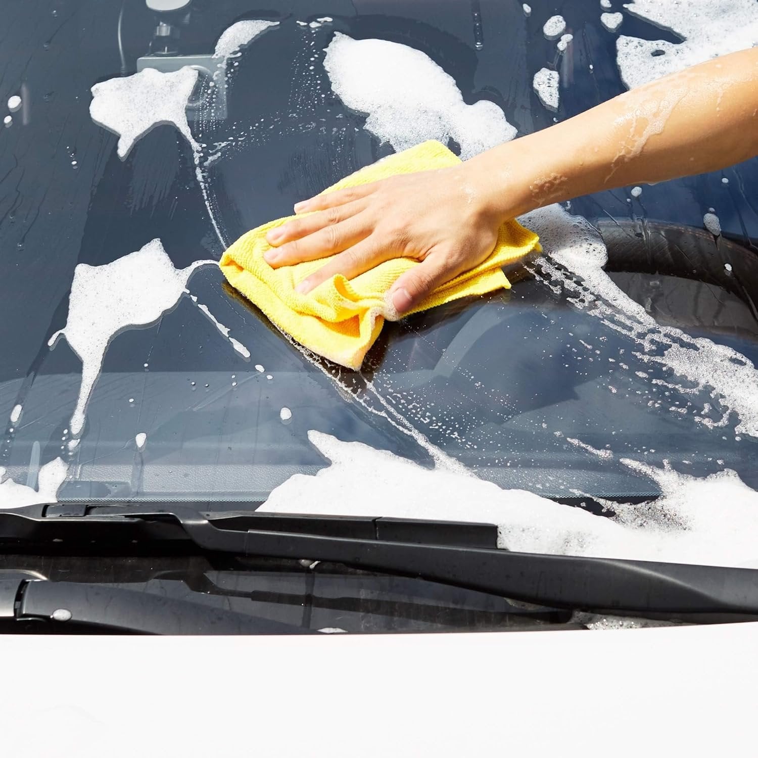 Amazon Basics Microfiber Cleaning Cloths, Ultra Absorbent, Lint Free, Streak Free, Non-Abrasive, Reusable and Washable, 16" x 12", Blue/White/Yellow, Pack of 24