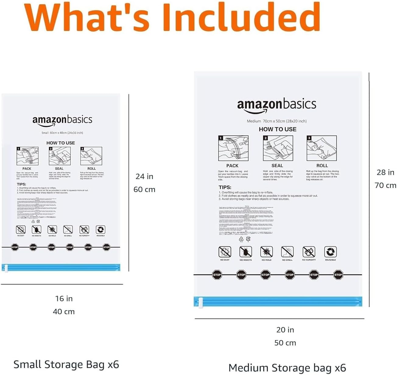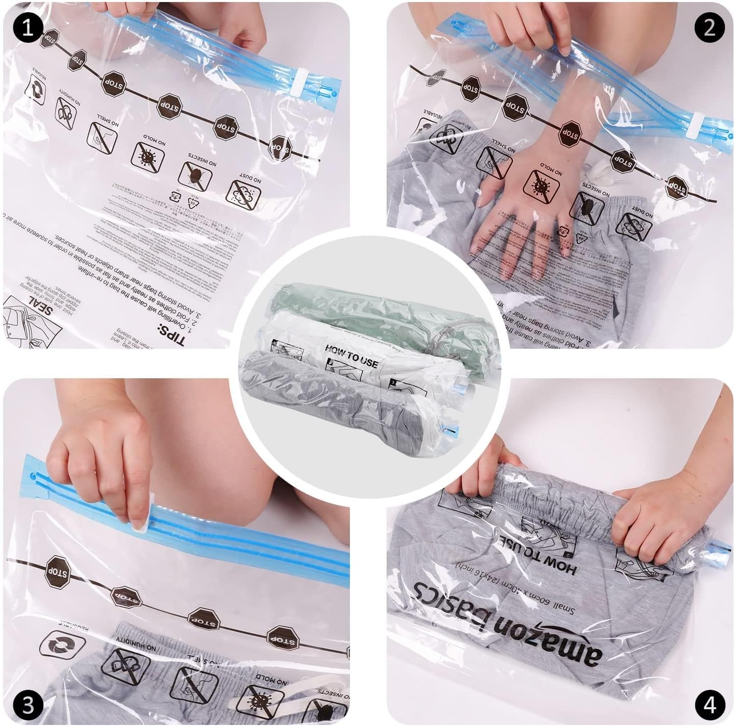 Amazon Basics Roll-Up Travel Storage Bags, 12 Packs of 6 (Small & Medium), Multiple, Clear