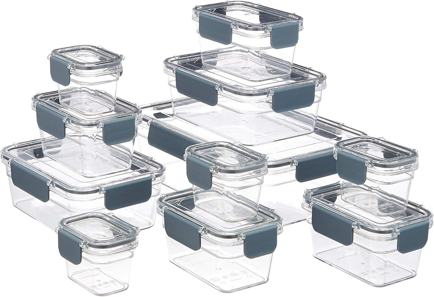Amazon Basics Tritan 22 Piece (11 Containers and 11 Lids) Locking Food Storage Container Set - Clear