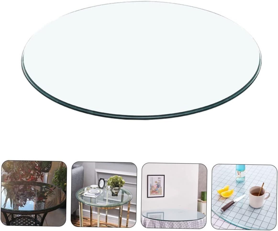 ANDRESLAD Round Glass Table Top Thickened Tempered Glass 38cm Diameter Shatterproof Easy to Clean Dining Table Top