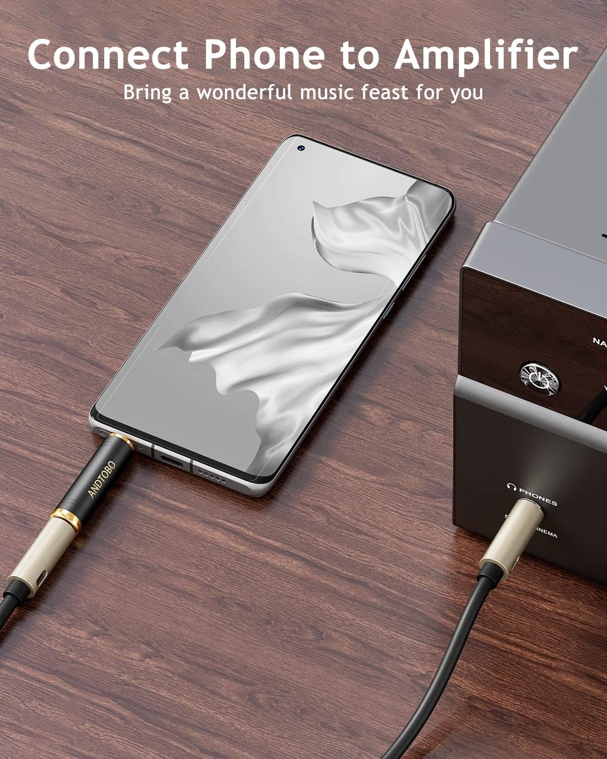 ANDTOBO 1/4'' to 3.5mm Stereo Pure Copper Headphone Adapter, 1/8'' Plug Male to 1/4''(6.35 mm) Jack Female Stereo Adapter for Headphone, Amp Adapter, Black 1-Pack