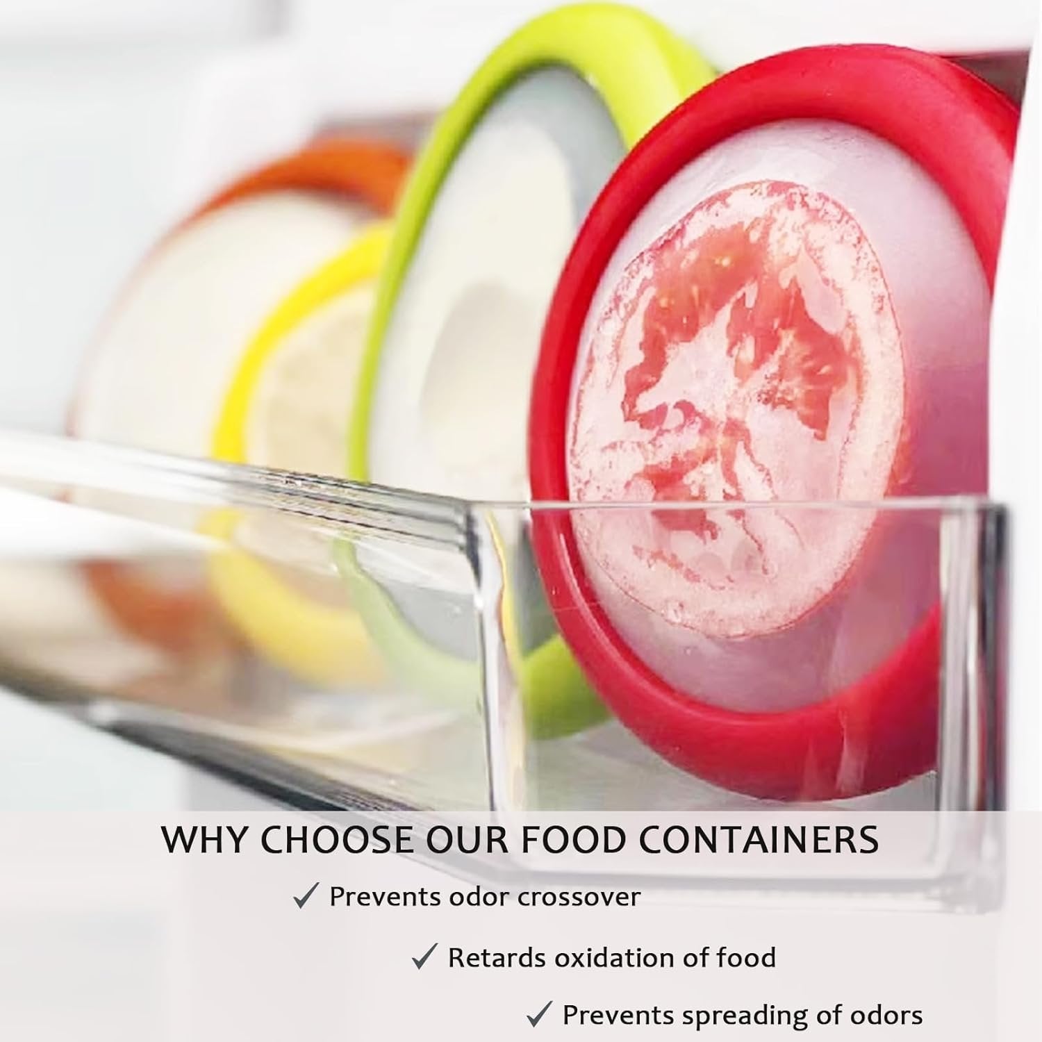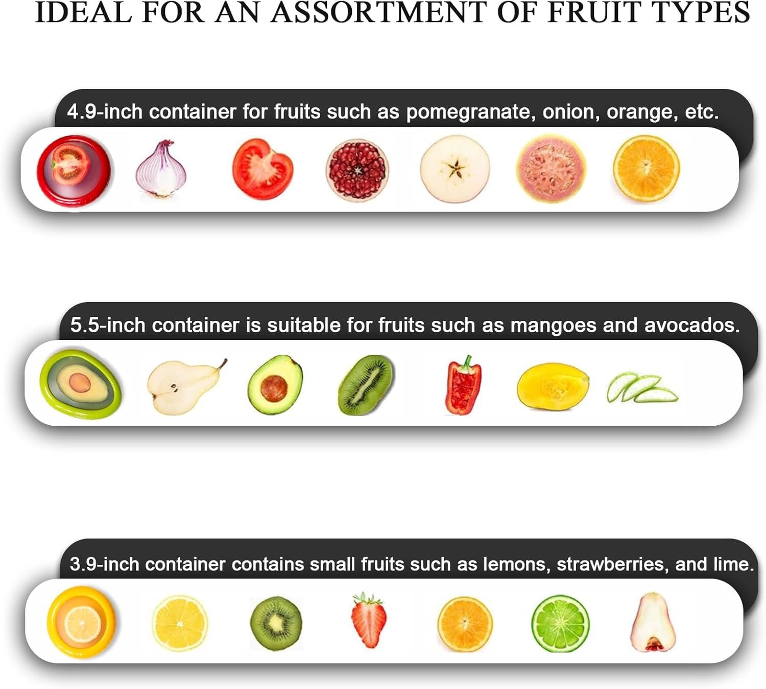 Upgrade Design: Avocado Saver for fridge, The container's edge is designed with numerous protrusions to enhance friction, facilitating ease of opening. This design optimizes space utilization and preserves food freshness while streamlining refrigerator organization. The distinctive onion-shaped design facilitates rapid identification of stored produce High-Quality Materials: The upgraded airtight food containers now have a soft, highly elastic food-grade silicone film and ABS top cover for perfect sealing without leakage. The rotating lid facilitates effortless opening and sealing of the container, guaranteeing prolonged durability without concerns about wear and tear Versatile Usage: These containers are ideal for storing a variety of fruits, vegetables, cheese, and leftovers. Their portability makes them suitable for use in office settings, kitchens, restaurants, or during camping trips Distinctive Seal: This fruit storage container has a tight seal to keep fruits and small foods fresh by preventing contact with the external environment. It's also versatile for storing nuts, yogurt, and snacks, making it a handy kitchen tool