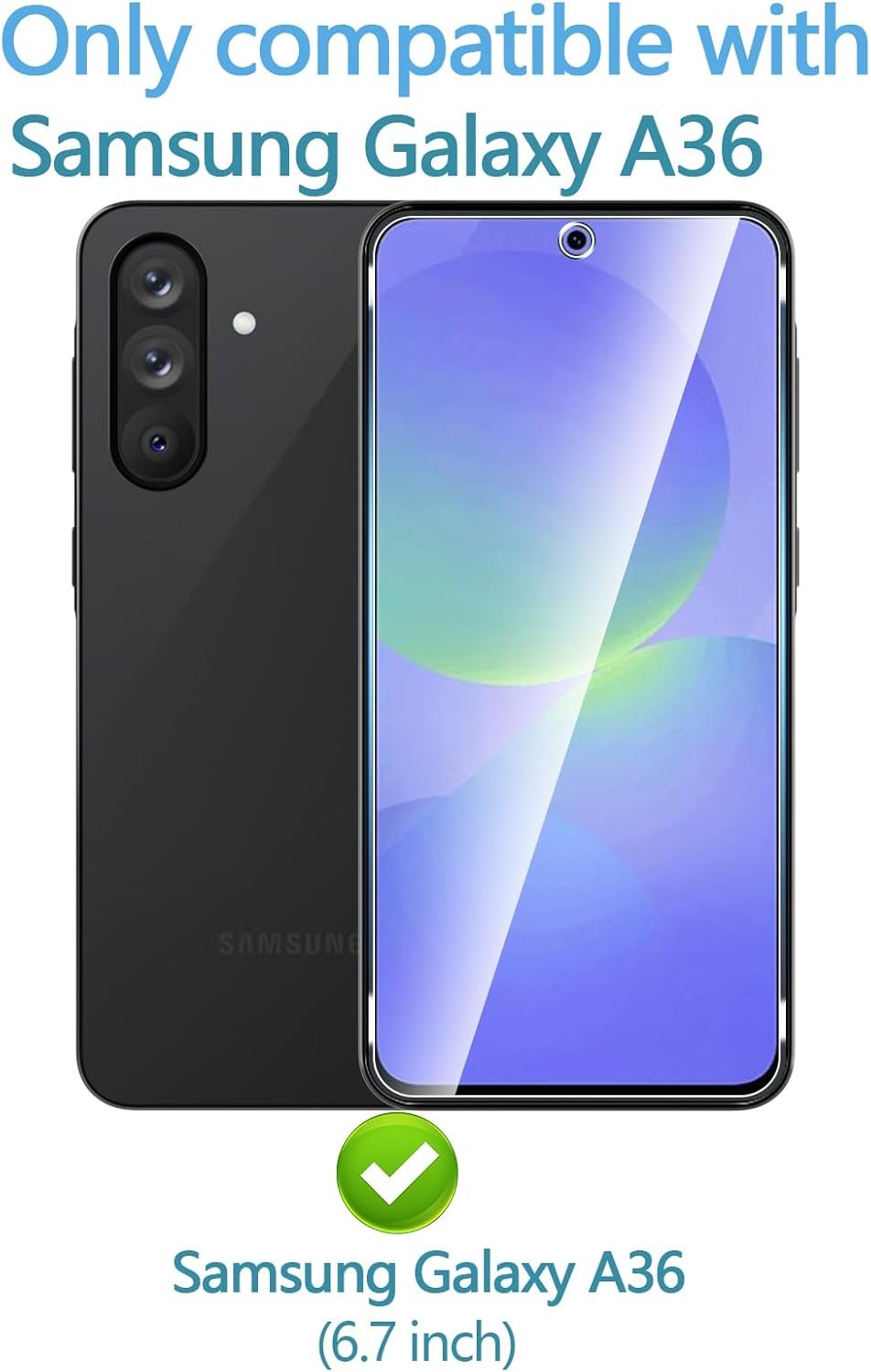 for Samsung Galaxy A36 - 3Pack Tempered Glass screen protector is specially designed for Samsung Galaxy A36 /samsung Galaxy A56 5G(Not for any other phone model).The 2.5D rounded edge provides a more comfortable feel than the traditional right-angled edge without hurting your fingers Provides the Ultimate Protection for Your Galaxy A36 /Galaxy A56 5G - Our tempered glass screen protector made of 0.33 mm TOP 9H+ Hardness glass. It has the advantage of Shatterproof,Scratch & Wear Resistant,and Durability,providing 2X stronger protection than normal glass.Featuring maximum protection from scratches, scrapes, and bumps in daily use Ultra-Clear and Ultra-Sensitive - Precise laser cut 0.33mm ultra-thin tempered glass,99.99% transparency can present the best color,which restore the best visual feast brought by the screen.Even more importantly,our tempered glass film applied the latest generation oleophobic nano coating,effectively reduce fingerprints from sweat and grease,ensuring smooth screen touching and super sensitive response Case Friendly - Anoowkoa Galaxy A36 5G/A56 5G screen protector is precisely cut by laser. Offer maximum screen coverage,fitting precisely its buttons and shape,while retaining a reasonable amount of space around the edge,so there will be no unnecessary bubbles on the edge and compatible with phone cases.If you have any questions about our products,please feel free to liaison 5.[After-Sales Service]: Anoowkoa values buyers'shopping experience and provides after-sales service.If you have any questions or dissatisfaction about our Samsung A36 5G/Samsung A56 5G screen protector, please feel free to contact us