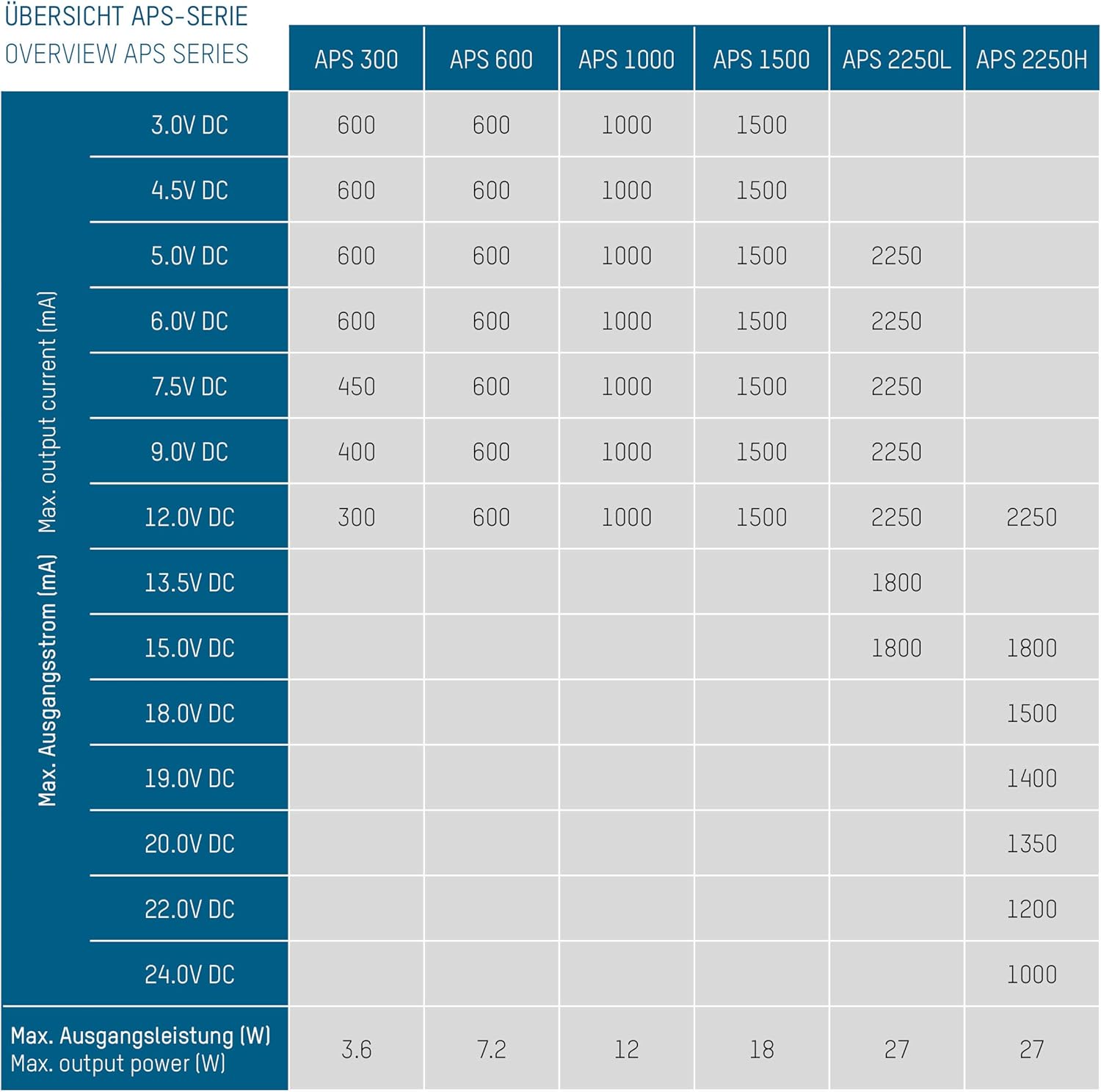 -BEFORE FIRST USE: Check the input voltage (quoted in V DC) required by your device. Set this voltage on the power supply with the help of the button 2 on the rotary switch 3 and connect the power supply with the mains after connecting the user. -UNIVERSAL: The universal APS 300 power supply from Ansmann with 7 plug types allows you to charge a wide range of small electronic devices such as notebooks, printers, monitors, camera and more. -THE RIGHT PLUG FOR EVERY DEVICE: with 7 different plugs easily interchangeable to always have the right plug at hand! Ideal for devices up to max 300mA -Details: Plug types: 2.5 jack plug, 3.5 jack plug, 5.5/2 connector. 5, plug connector 5.0/2.1, plug connector 4.0/1.7, plug connector 3.5/1.35, plug connector 2.35/0.75. ErP Compliance Built-in reverse polarity -ADJUSTABLE: The voltage is adjustable with the knob on the back (3-12V). Maximum output current: 600mA at 3V-6V / 450mA at 7.5V / 400mA at 9V / 300mA at 12V. -INTUITIVE USE: putting the universal power supply into operation is simple. Check the current and voltage indications on the device and insert the right plug!