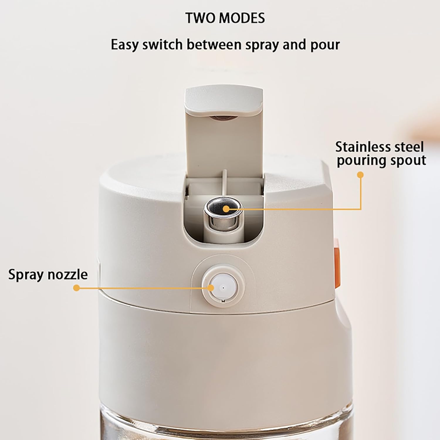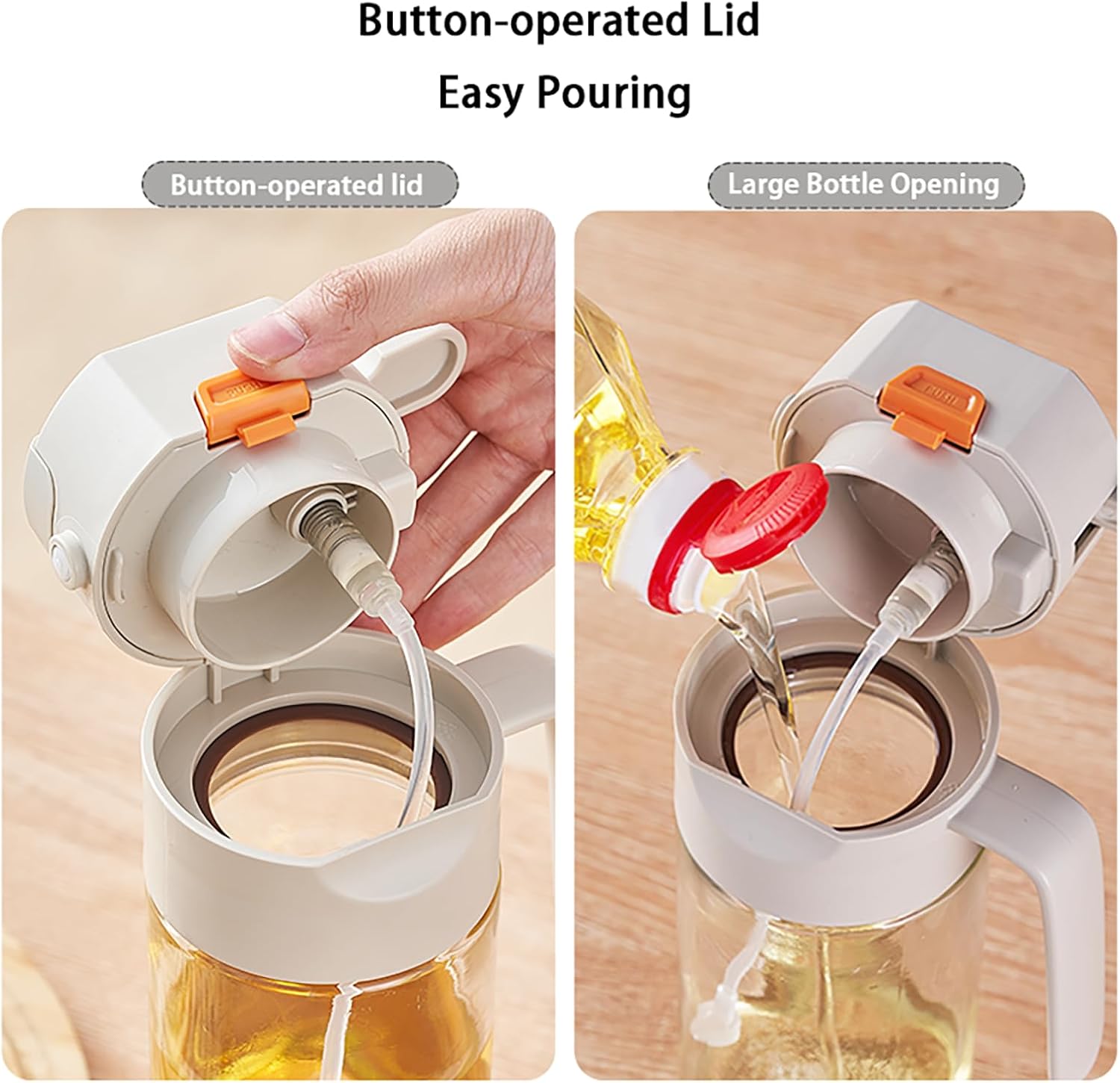 【Multi-Functional oil dispenser】This oil spray bottle can both spray and automatically open for pouring, making it suitable for various cooking scenarios such as salad dressing, griddle, roasting, grilling, baking,BBQ. 【Large Capacity & Refillable】This kitchen oil dispenser bottle has a 20oz/600ml capacity, with a wide mouth design for easy refilling without spills. When full, it lasts longer than smaller capacity alternatives. 【Food-Grade Material】This oil dispenser is made from BPA-free PP and lead-free thick glass, making it durable, heat-resistant, and safe to use. 【One-Click Open/Close】This continuous spray bottle features a side button to easily open and close the cap, allowing for convenient refilling while preventing olive oil from leaking. 【Dirty-Hand-Free Design】Press the thumb pump of the glass spray bottle for a fine, controlled spray. Slide the cap button to switch to pouring mode. This olive oil spray bottle is leak-proof, ensuring a clean and mess-free use.