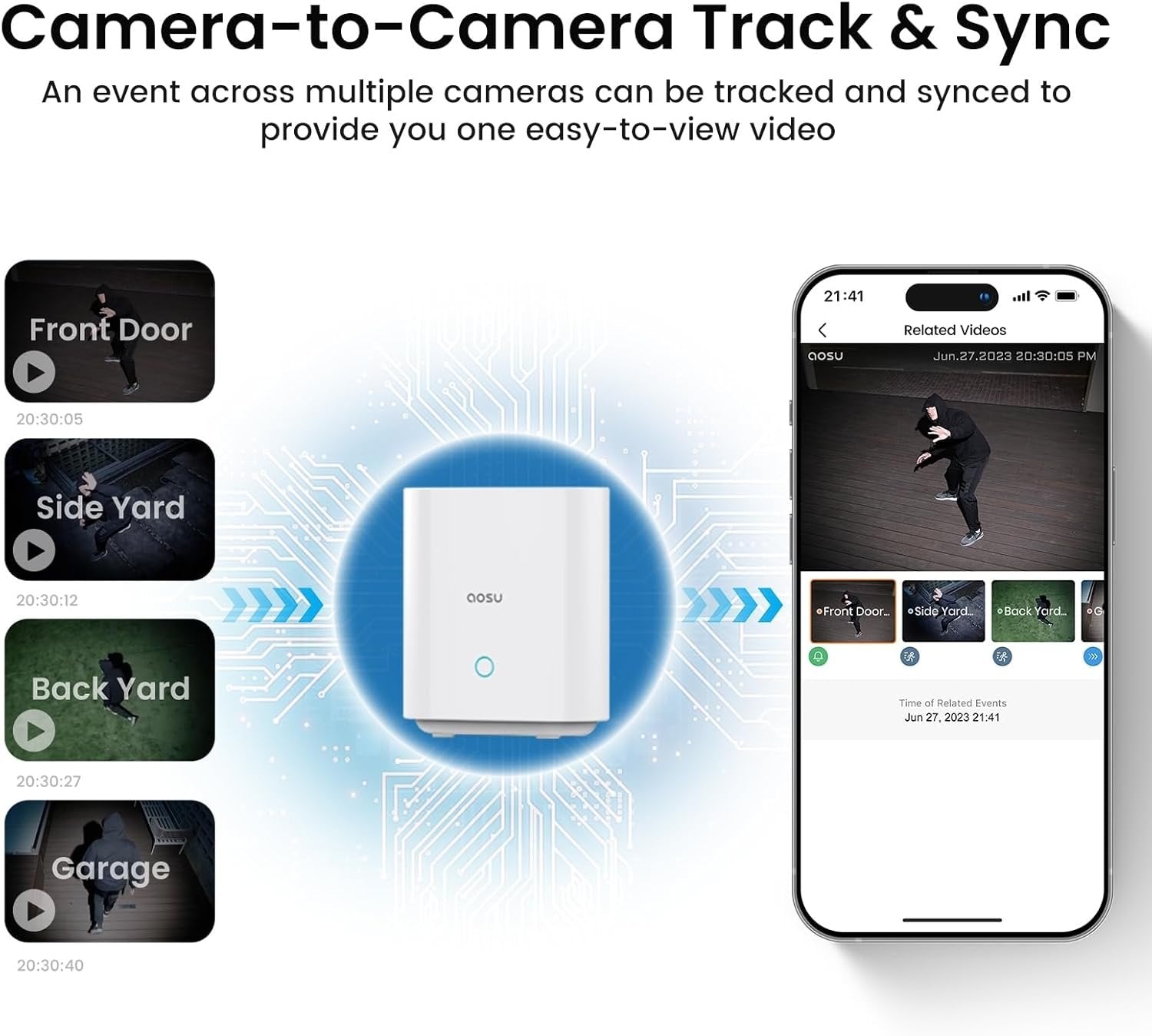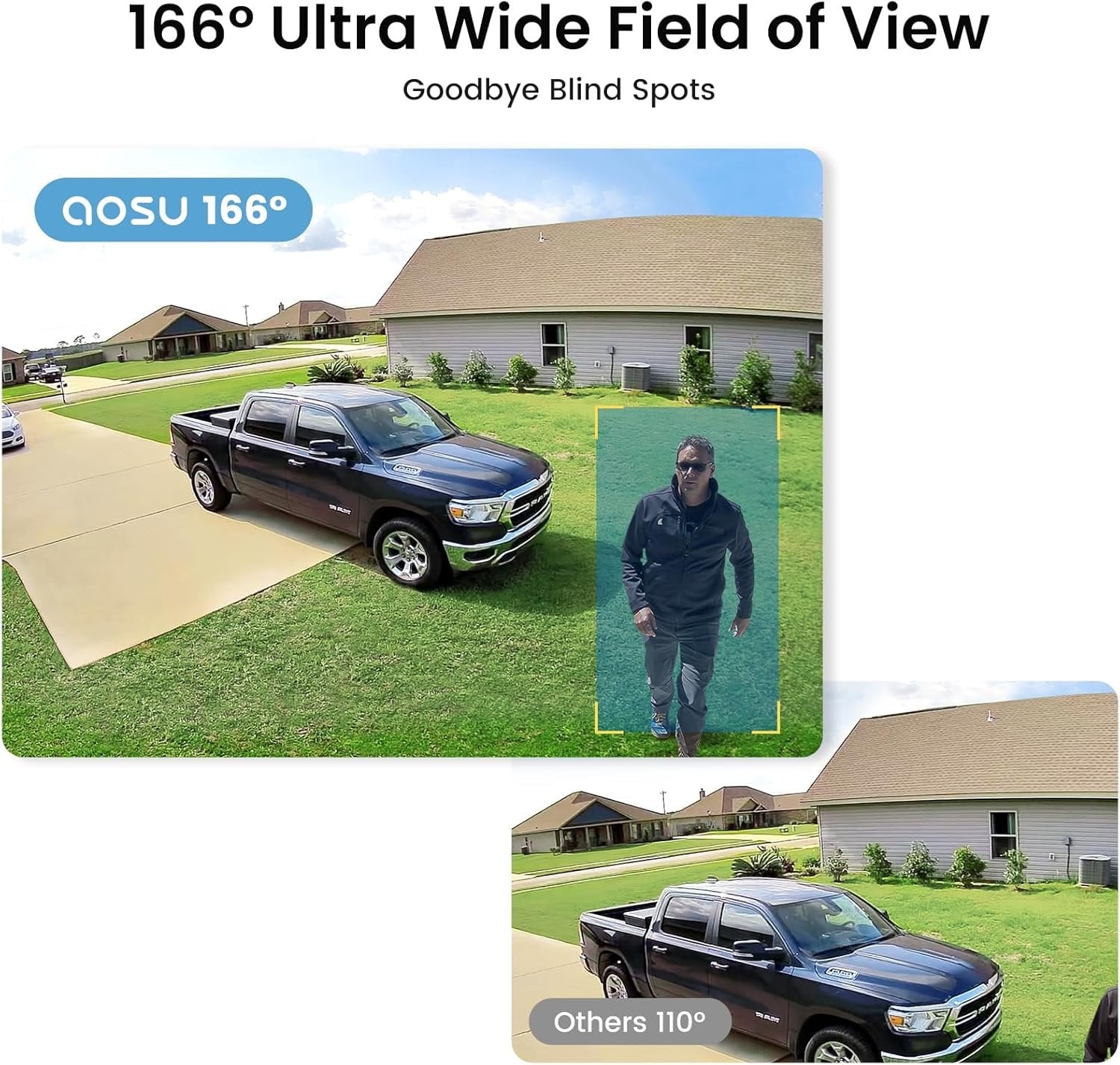 AOSU Solar Security Cameras Wireless Outdoor, 2K QHD Home Security System, 4-Cam Kit with 166° Ultra-Wide View, Cam-to-Cam Sync, 32GB Homebase Local Storage, Color Night Vision, No Monthly Fee
