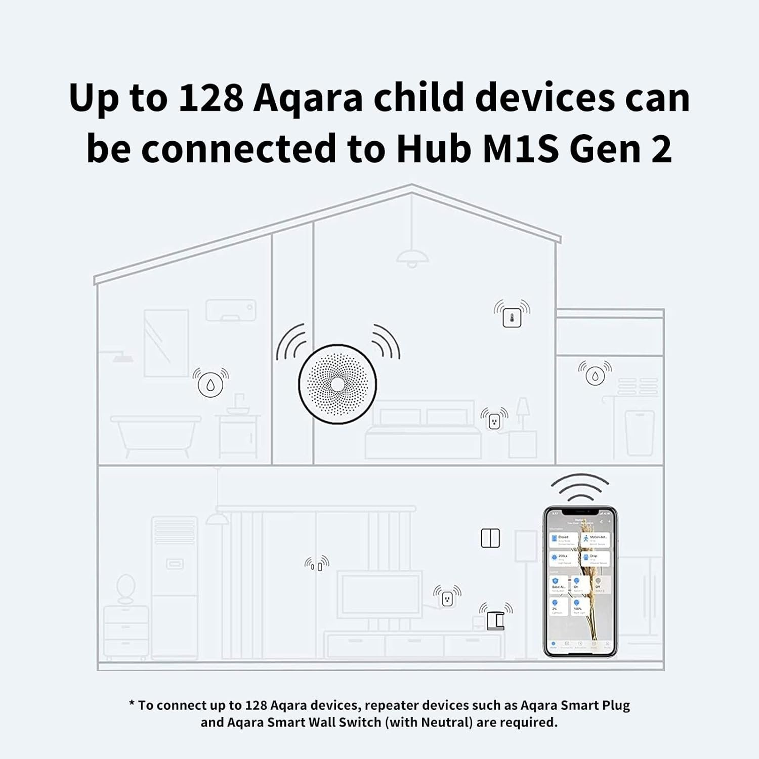 Note: The Aqara Hub M1S Gen 2 requires a secured 2.4 GHz Wi-Fi network connection. One Aqara Hub M1S Gen 2 can connect up to 128 Aqara devices (Aqara Zigbee repeaters required). Thanks to the latest Zigbee 3.0 protocol, the M1S Gen 2 supports all existing and latest Aqara devices based on the fastest, most stable, and energy-efficient technology. Also, the M1S Gen 2 supports WPA3, the latest Wi-Fi security specification, which is more secure and reliable. Wireless Control Center: The M1S Hub Gen 2 connects all Aqara devices and allows for seamless integration across Aqara’s sensors and home automation devices. It controls the connected lights and other appliances from your smartphone. Schedules, timers, and scenes can be set through the Aqara Home app to help you manage your home more easily. The M1S Hub Gen 2 works with all Aqara devices to create a comprehensive, smart home automation system. Focus on Security: A powerful 2-watt speaker can be used as an alarm or doorbell, as well as via configurable automations, and it now supports include custom uploadable ringtones. Apart from the Aqara Alert System, the M1S Gen 2 supports all 4 HomeKit alarm modes. High-quality components and design are not only a subtle addition to any room interior, but also make the M1S Gen 2 more reliable by achieving constant airflow through its large, perforated base. RGB Light and Illumination Sensor: M1S Gen 2 has a built-in RGB light made of 18 powerful LEDs and a diffuser. It can be used as an alarm, accent, or night light and has configurable brightness and color. Moreover, compared to our previous hub, it has a fully functional illumination sensor that can be used in automations via the Aqara Home app. All-Round Compatibility: The Aqara Hub M1S Gen 2 makes your Aqara devices compatible with a wide range of smart home ecosystems and voice assistants. Apple HomeKit, Google Assistants, Alexa and IFTTT are supported. * Note: Not all Aqara child devices are compatible with all platforms. Please see details for each device. If you have any questions, please feel free to contact us.