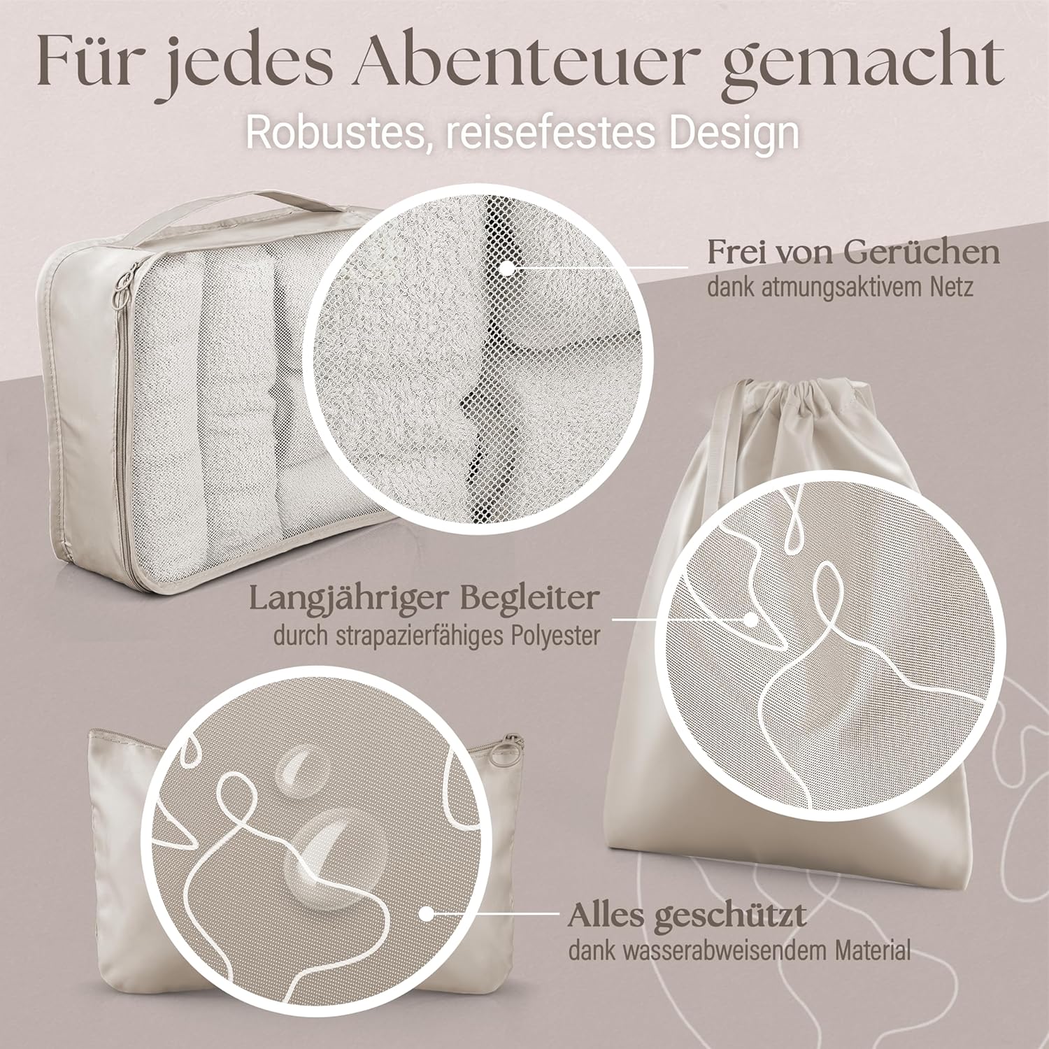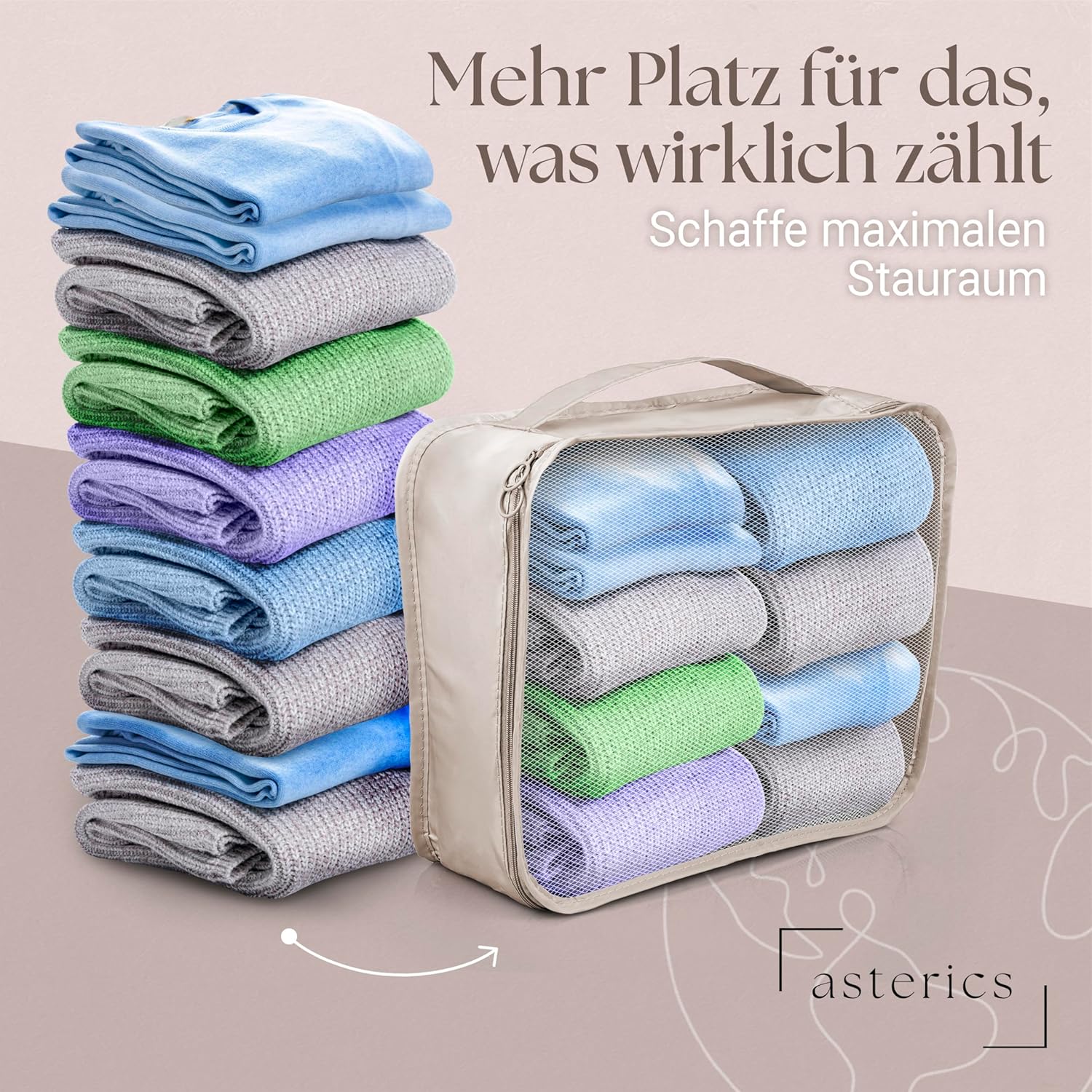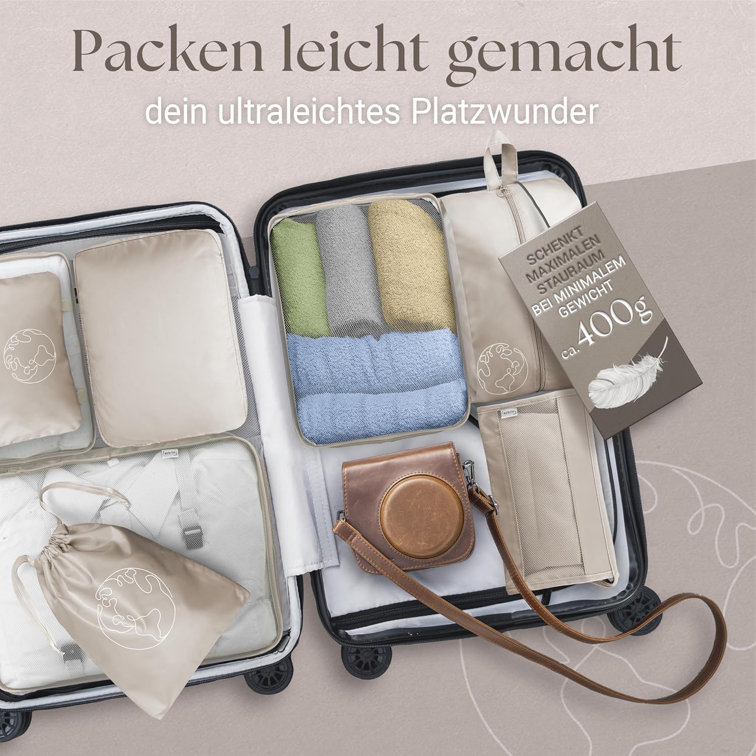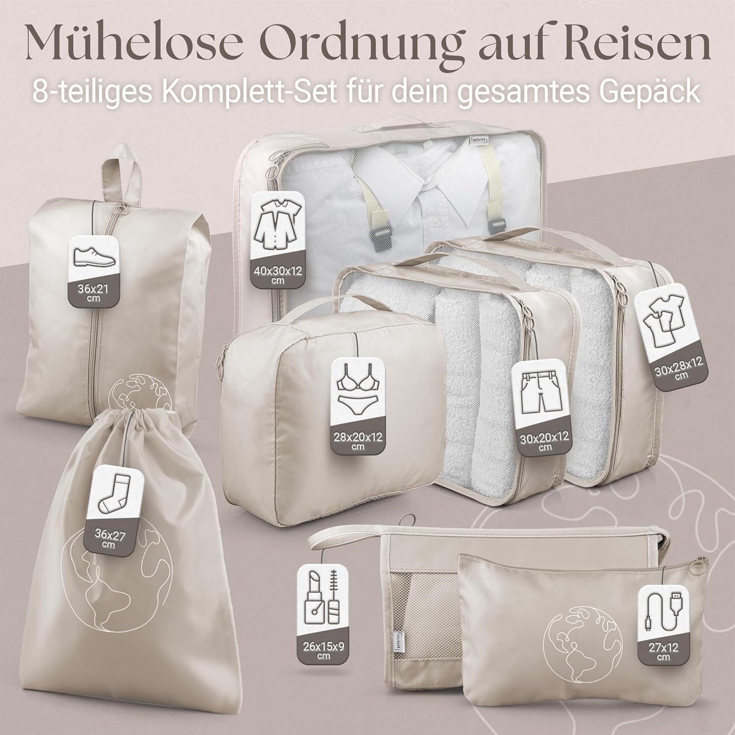asteriCS Luggage Organizer (8 Piece Set) Lightweight Compact - Packing Cubes Versatile for Suitcase, Backpack, Changing Bag, Travel Gadgets (Beige)