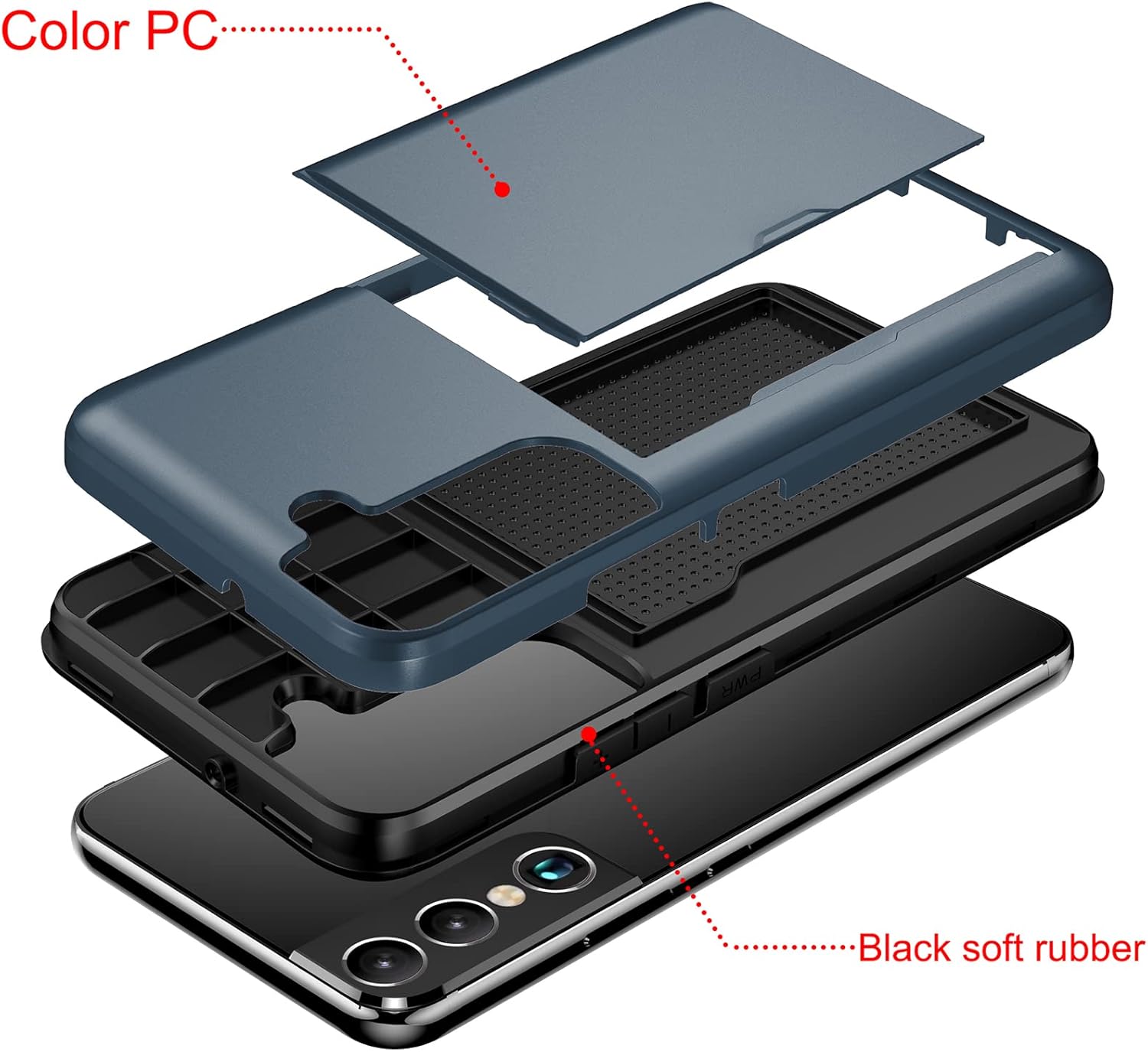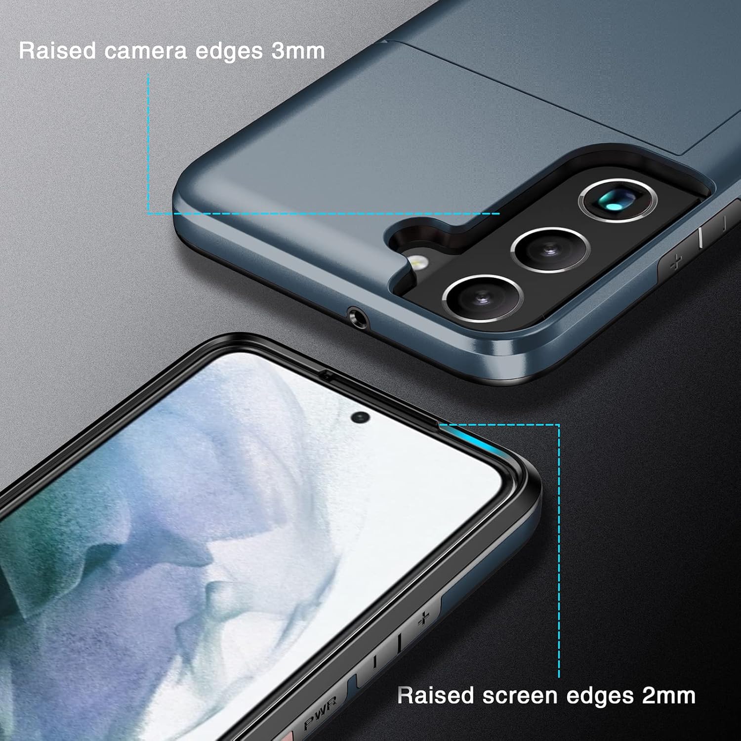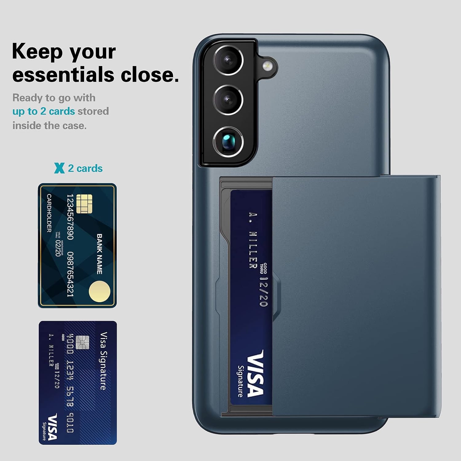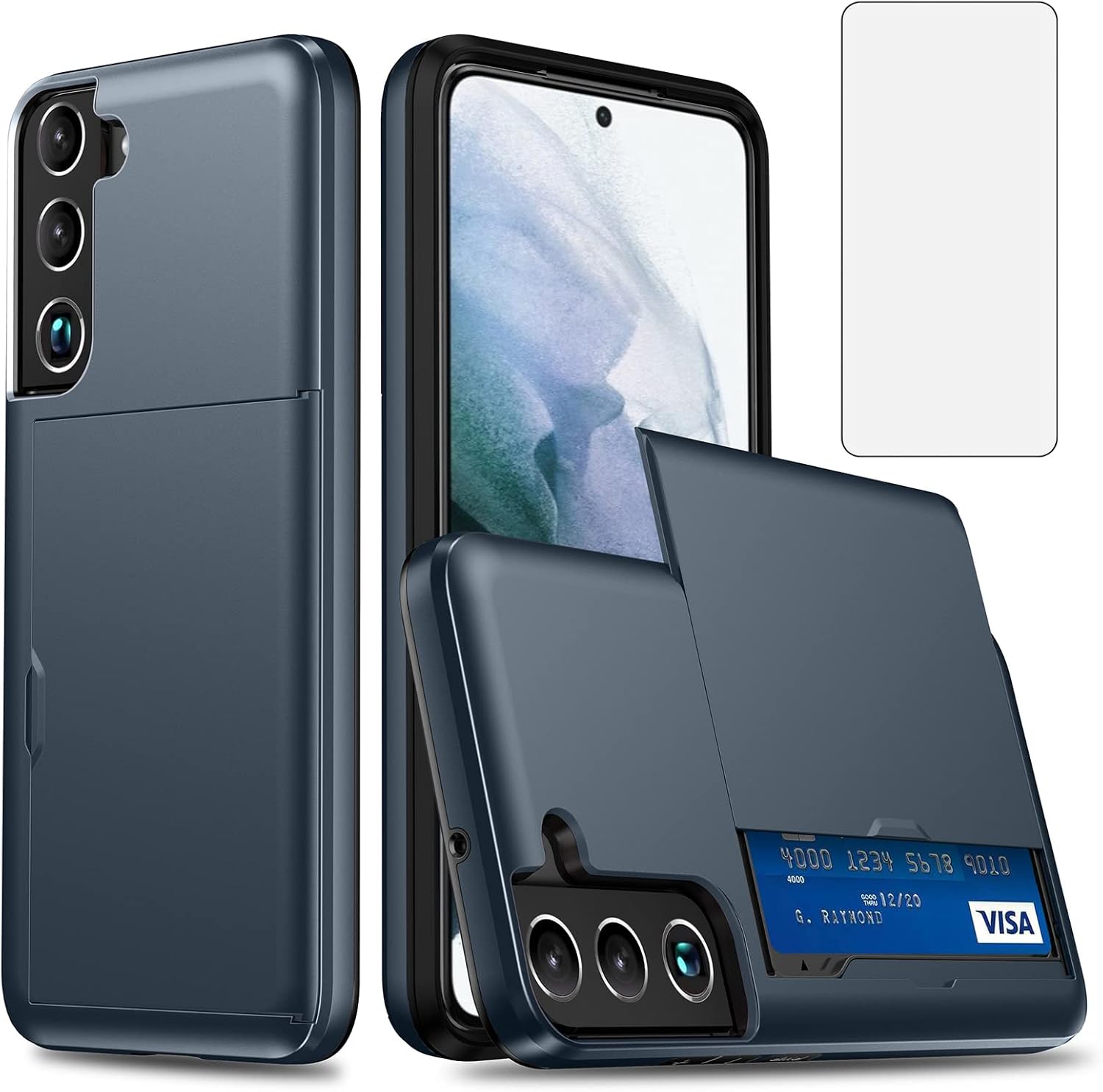 Asuwish Phone Case for Samsung Galaxy S22 5G with Tempered Glass Screen Protector and Credit Card Holder Wallet Cover Hard Hybrid Cell Accessories Gaxaly S 22 22S G5 Women Men Mobile Slot NavyBlue