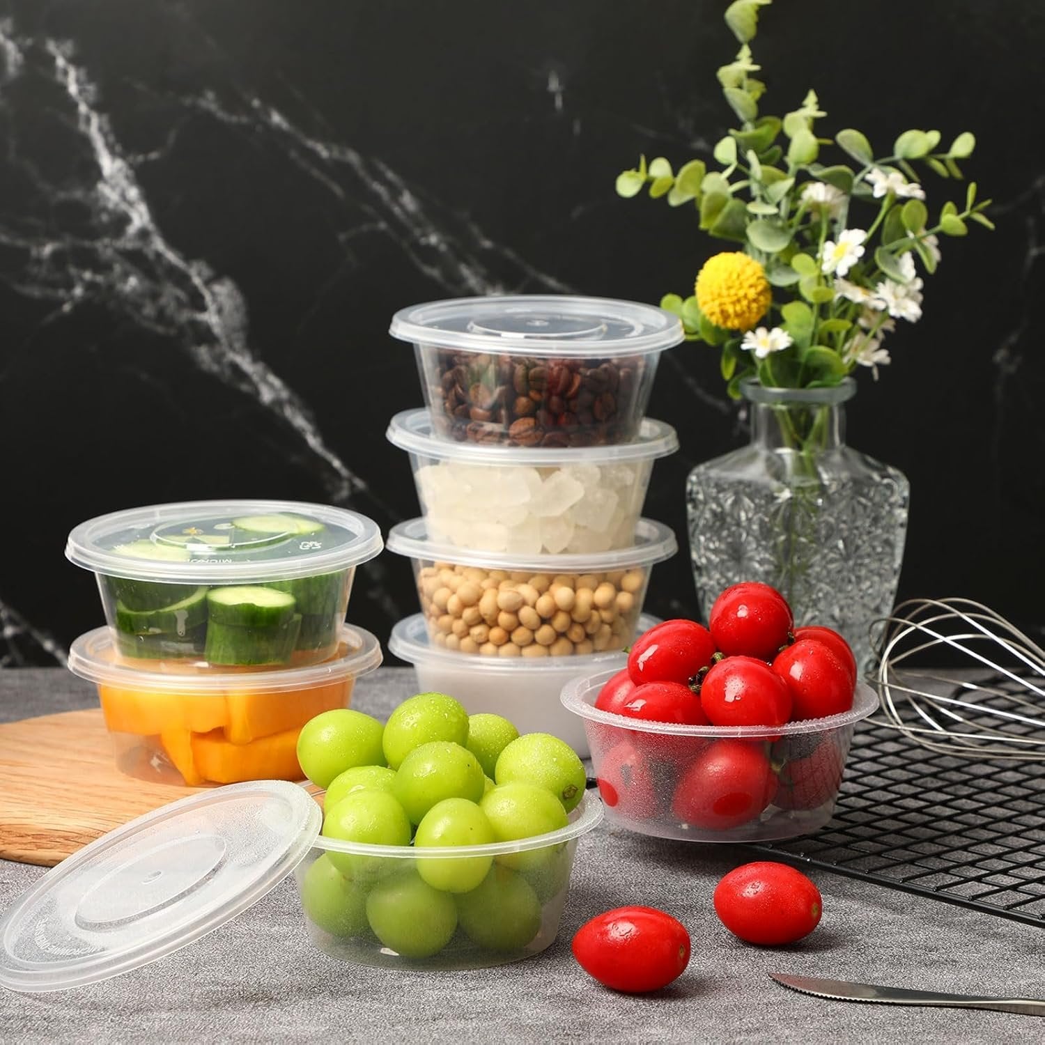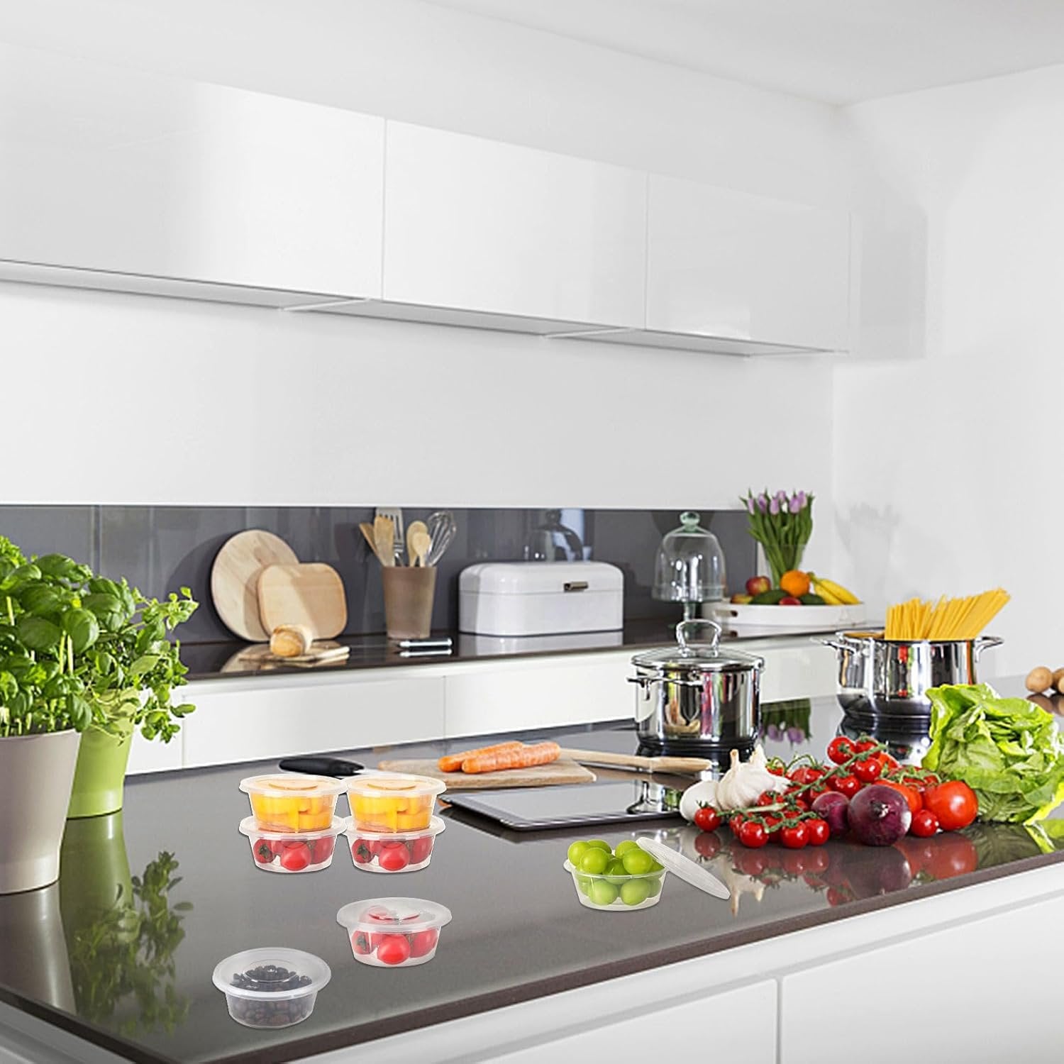 Augshy 40 Pack Small Slime Containers with Lids, Jello Shot Cups Condiment Containers Plastic Portion Cups with Lids for Sauce Salad Dressing Food Storage Containers(6 oz)