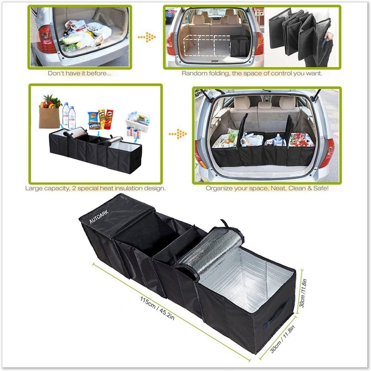 AUTOARK Cargo Foldable Multi Compartment Fabric Car Truck Van SUV Storage Basket Trunk Organizer and Cooler Set,Black,AK-018
