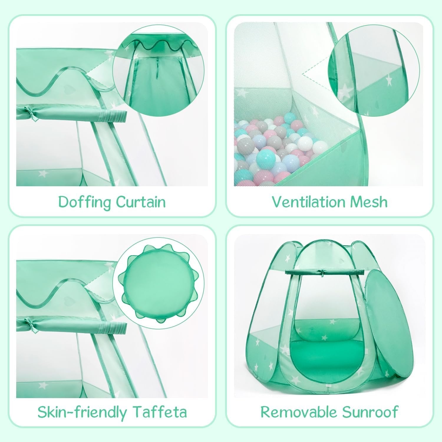 Baby Ball Pit for Toddler with 50 Balls, Pop Up Princess Tent with Star Lights for 1 2 3 Year Old Birthday Gift, 12-18 Months Baby Girl Toys with Carrying Bag, Indoor&Outdoor Play Tent for Kids(Green)