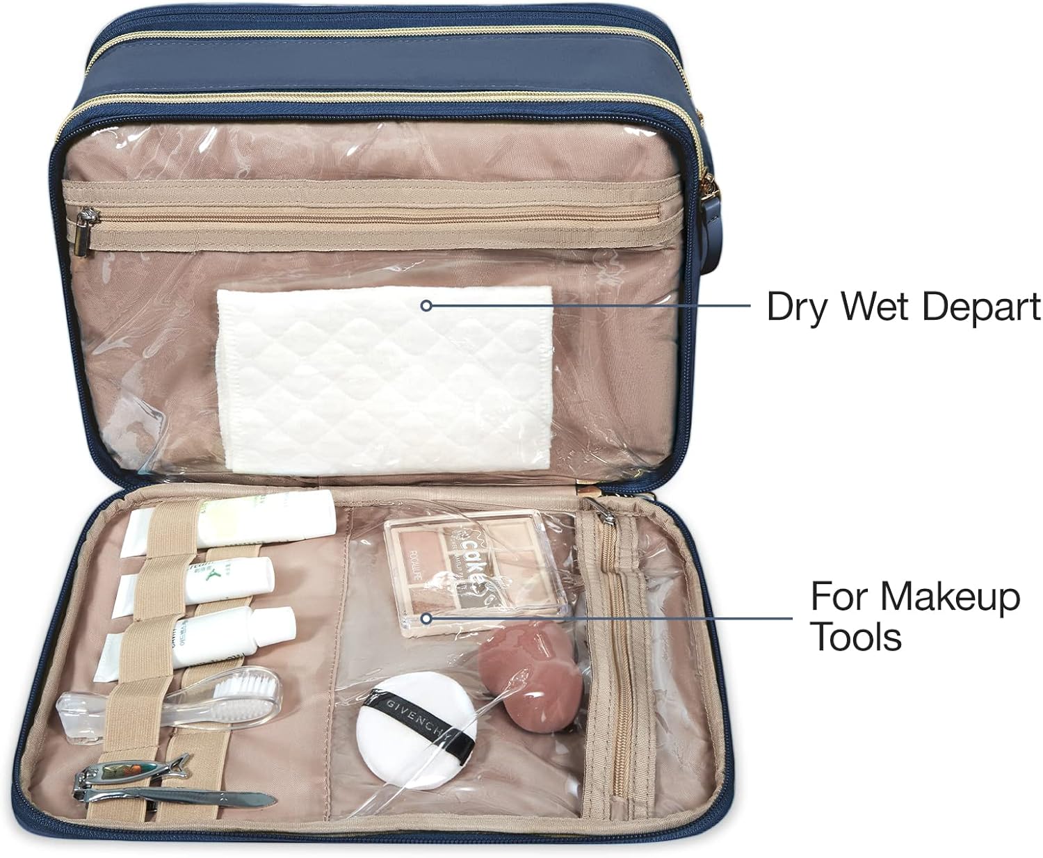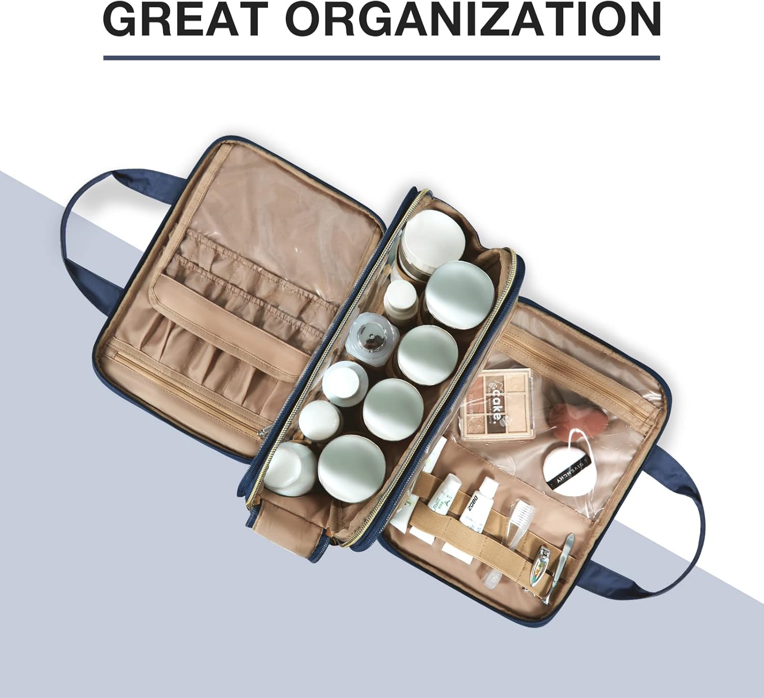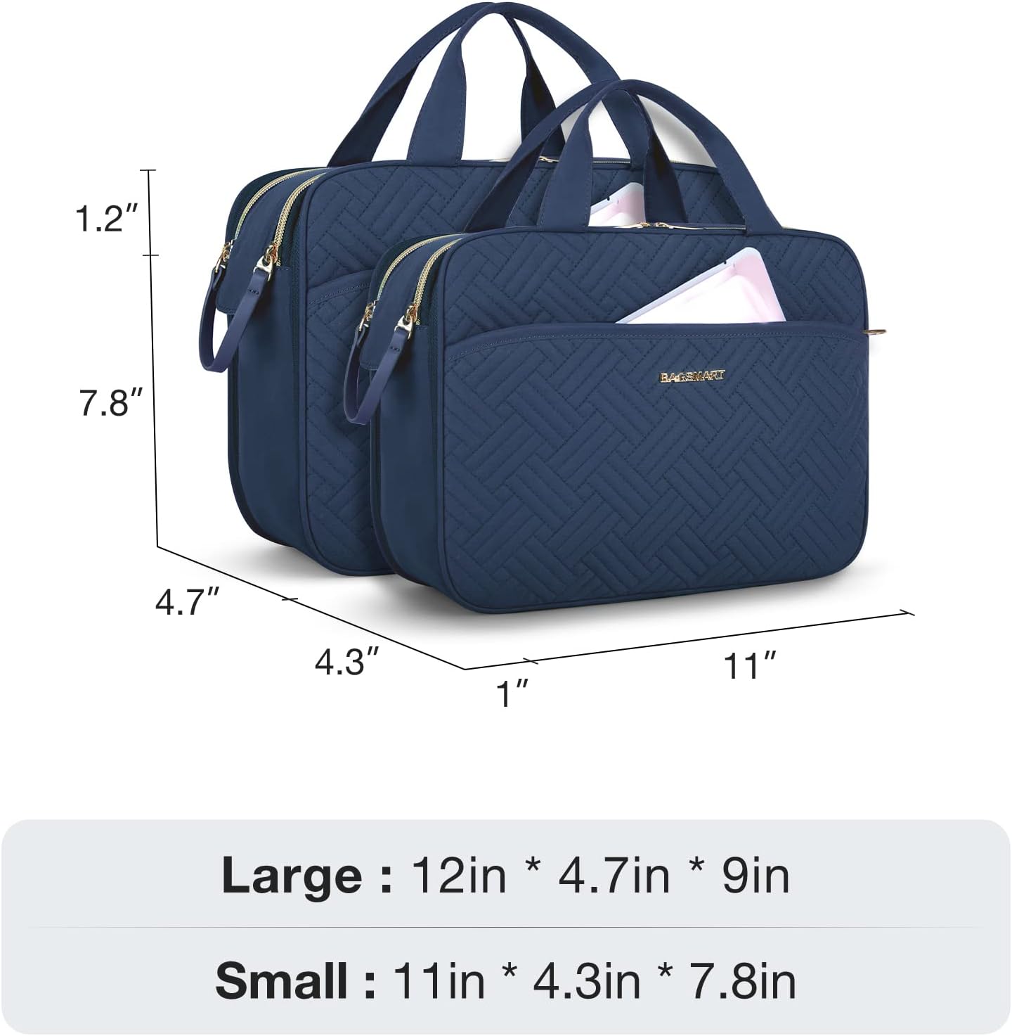 BAGSMART Large Toiletry Bag, Travel Makeup Organizer Water-resistant Makeup Cosmetic Bag Travel Bag for Accessories, Shampoo, Full Sized Container, Toiletries (Navy Blue, Large)