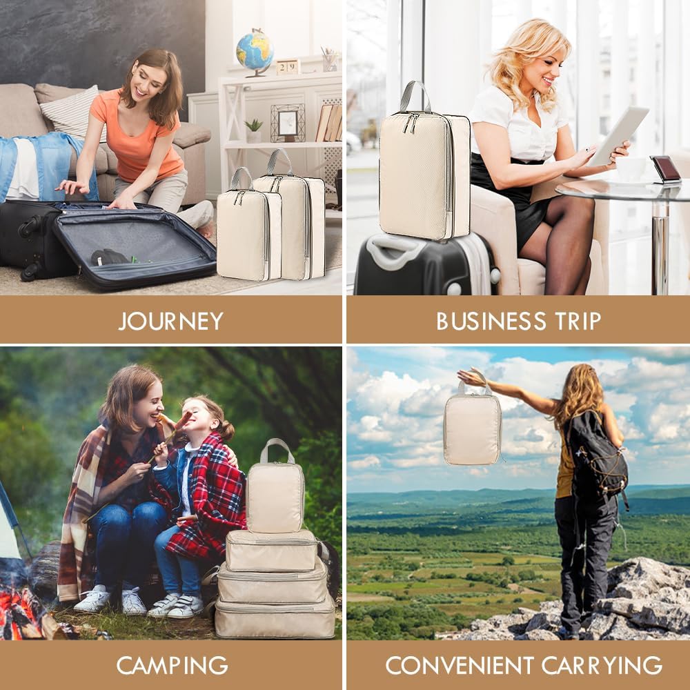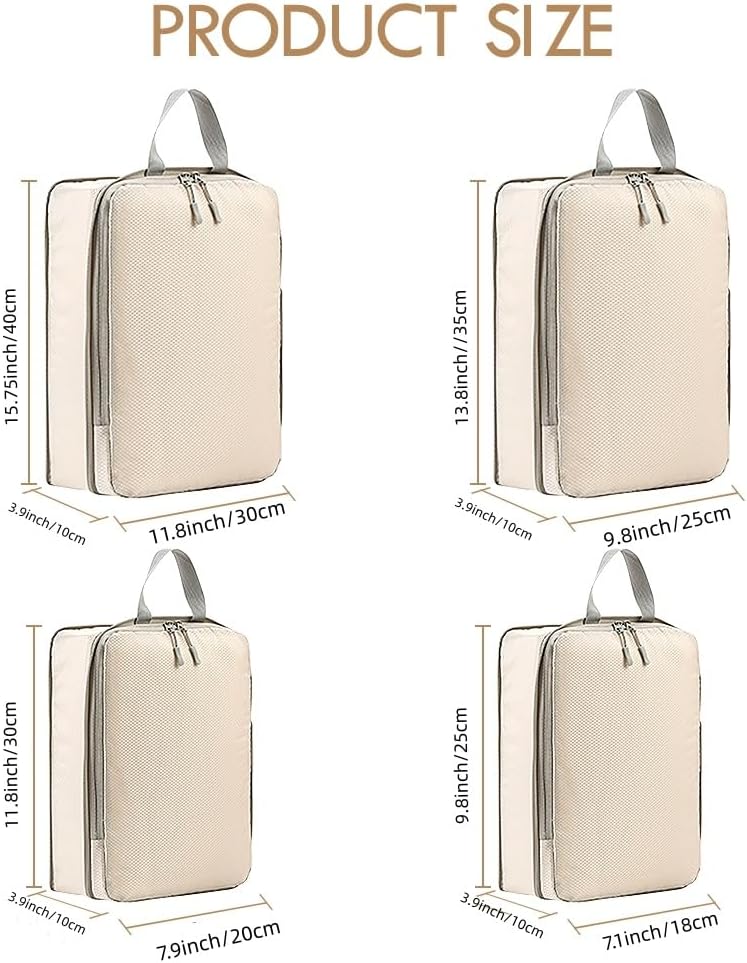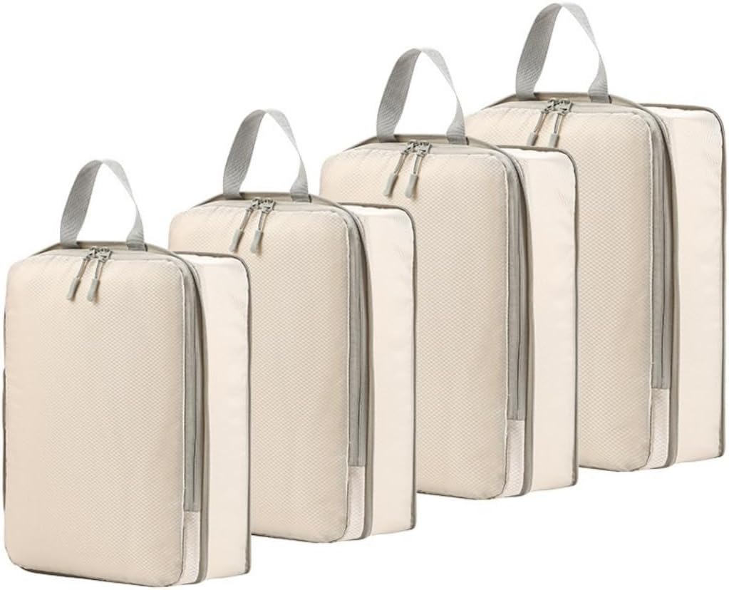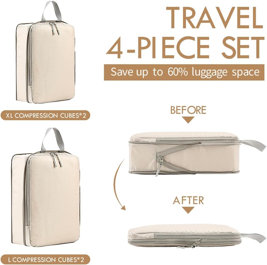 Bansga Suitcase Organizer, 4 Set Travel Organizer, Compression Packing Cube Space-Saving Expandable Ultralight Travel, Clothing Organizers Sacks Storage Suitcase Set-Beige