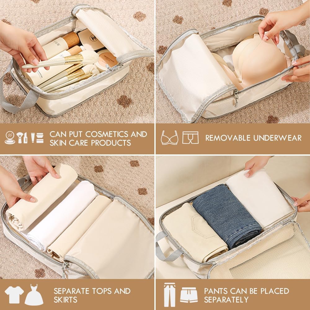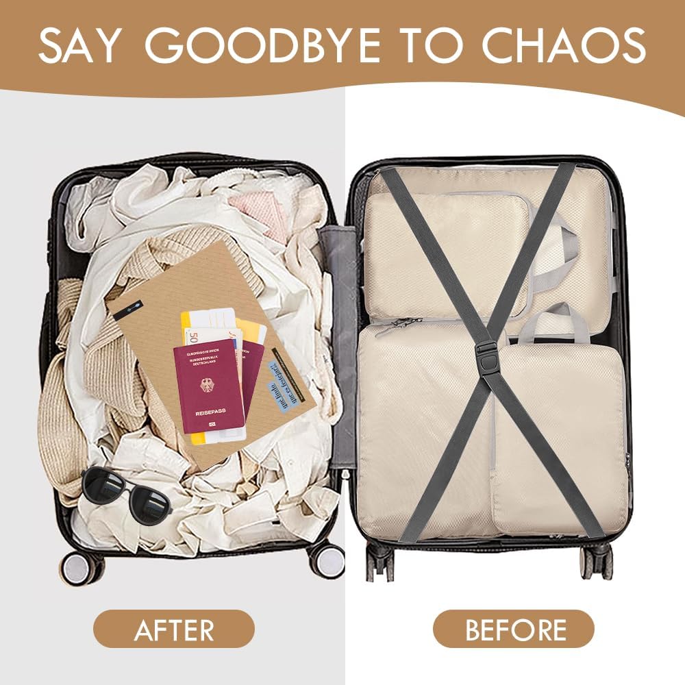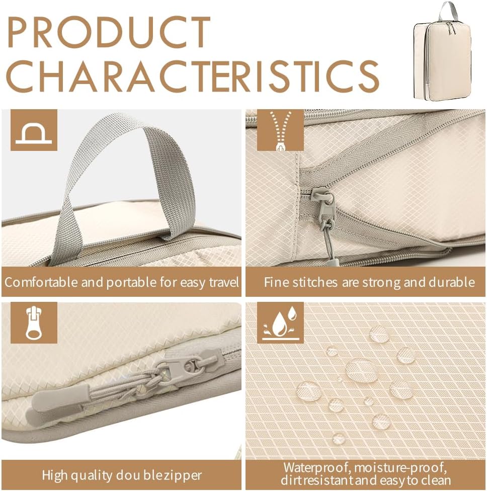 Bansga Suitcase Organizer, 4 Set Travel Organizer, Compression Packing Cube Space-Saving Expandable Ultralight Travel, Clothing Organizers Sacks Storage Suitcase Set-Beige