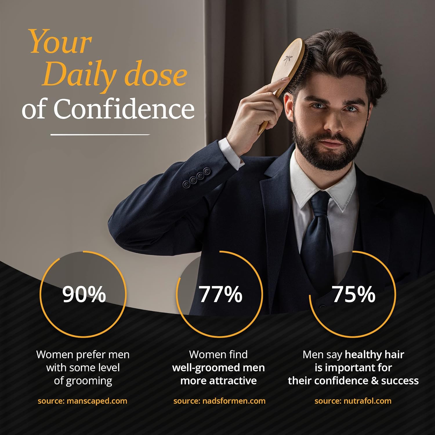 ✅ Restore shine & texture to mens' hair - Your Boar Brush by Belula will distribute sebum (natural oil) on the entire length of your hair strand, restoring the natural shine and the healthier look of your hair, making it smoother. ✅ A boar bristle brush that untangles like a charm? – Yes! Thanks to the untangling power of the added nylon pins, this boar brush will replace your bristle brush, curly hair brush, hairbrush for thick hair or any wet hair brush you might be currently using. We combined the benefits of using a boar bristle brush with the power of a detangling brush so you can enjoy the best of both worlds. ✅ Premium boar hair brush – Both the 100% natural boar bristles and the nylon pins we use are of high quality and flexible, to ensure you get less pull, less pain and less damage to your hair. Used daily, your hairbrush by Belula massages the scalp to aid with exfoliation of dead cells, releases sebum to moisturize the scalp and stimulates blood flow that helps trigger hair-growing properties. ✅ Complete hair brush set. Perfect as gift – Use the bristle brush to nurture your hair. The wooden comb is best for untangling any hair knots, as well as for cleaning your brush. You also get 2 x palm brushes to style your beard, for scalp massaging when applying shampoo or simply brush your hair, and a travel bag, for free. ✅ Zero risks, only benefits – In the unlikely event that our hair brush men is not right for you, reach out to us and we will make sure you will get the best experience with us.