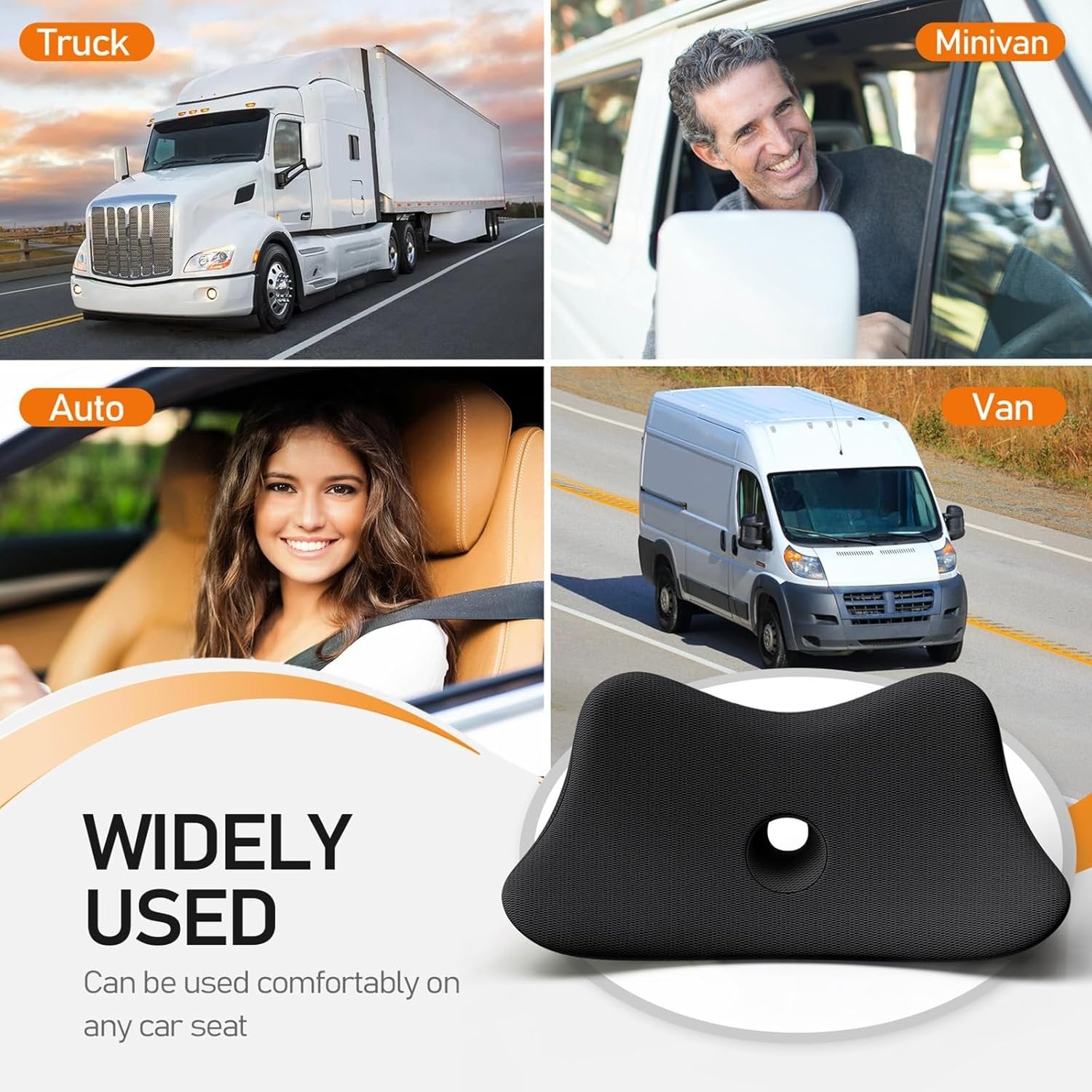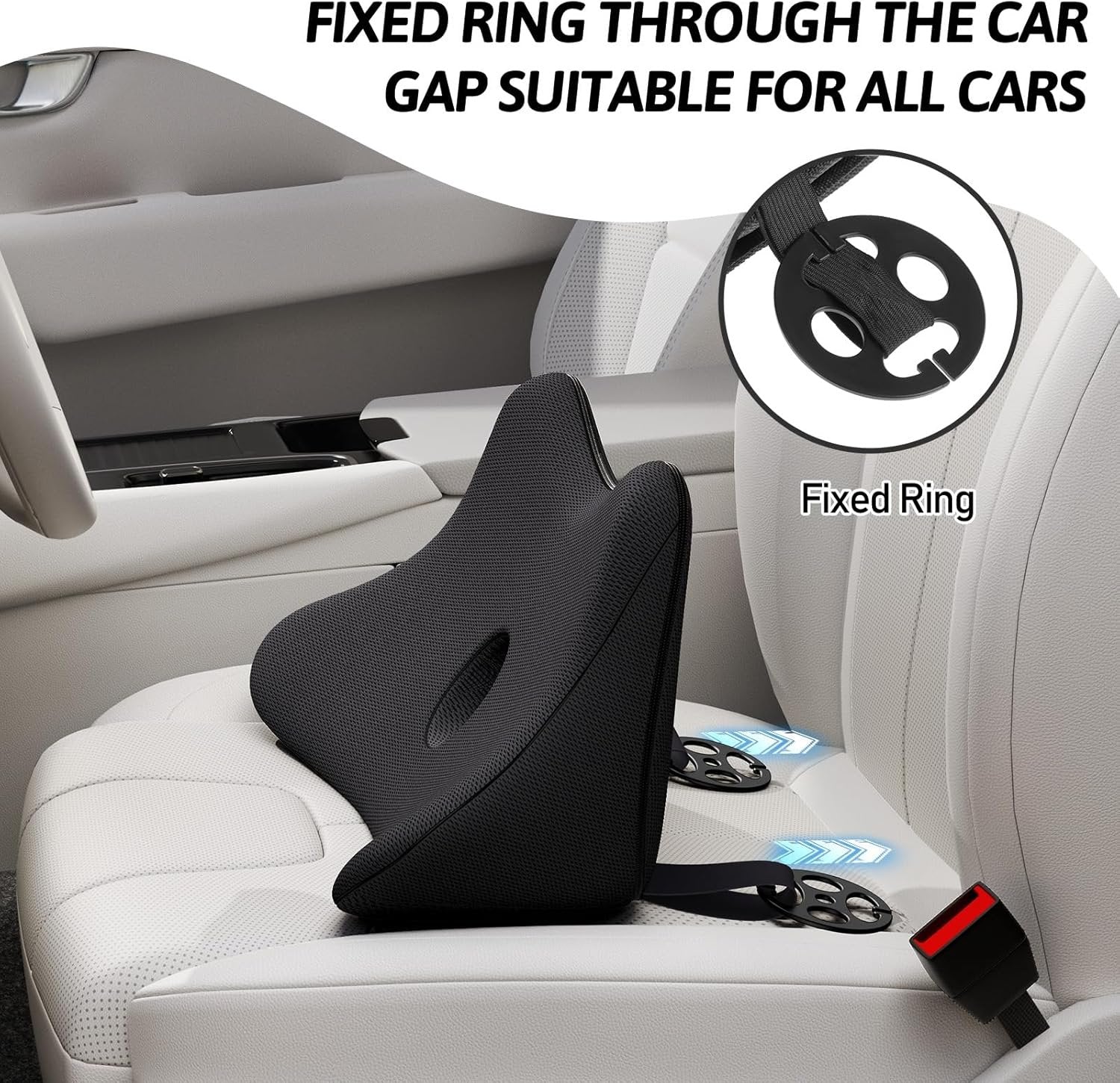 Benazcap Lumbar Support Pillow for Car Seat, Lower Back Support Pillow for Sciatica & Back Pain Relief, 2 in 1 Memory Foam Lumbar Support Pillow for Office Chair - Black