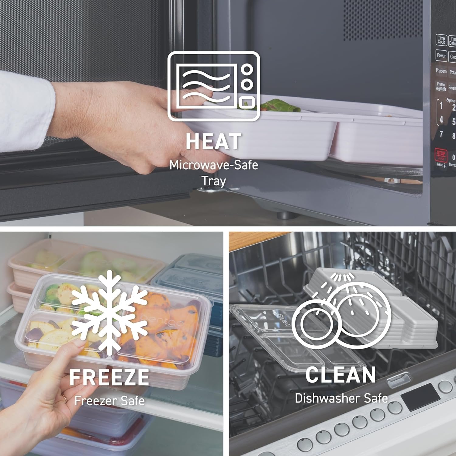 Bentgo Prep 3-Compartment Meal-Prep Containers with Custom-Fit Lids - Microwaveable, Durable, Reusable, BPA-Free, Freezer and Dishwasher Safe Food Storage Containers - 10 Trays & 10 Lids (Silver)