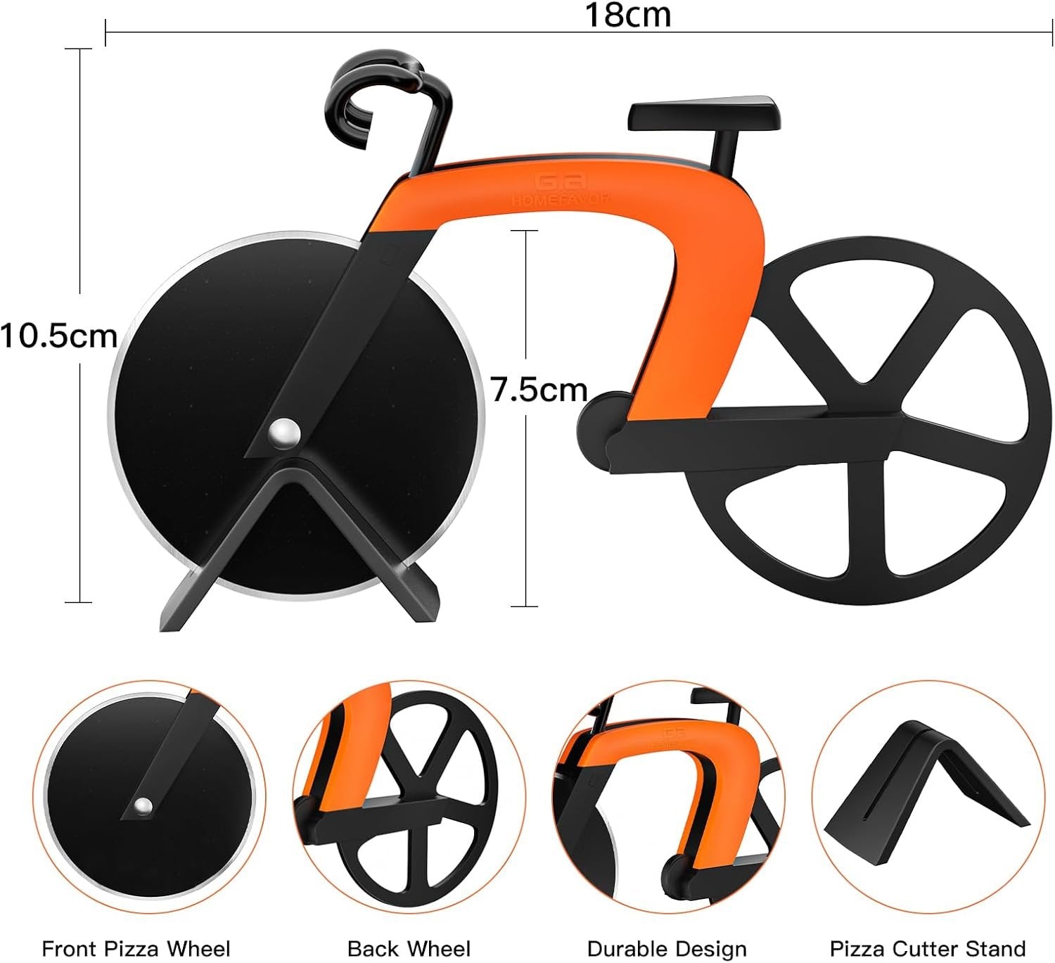 Bicycle Pizza Cutter, Stainless Steel Bicycle Shape Pizza Cutter Blades with Non-Stick Coating Kitchen Tools with Easel, Orange