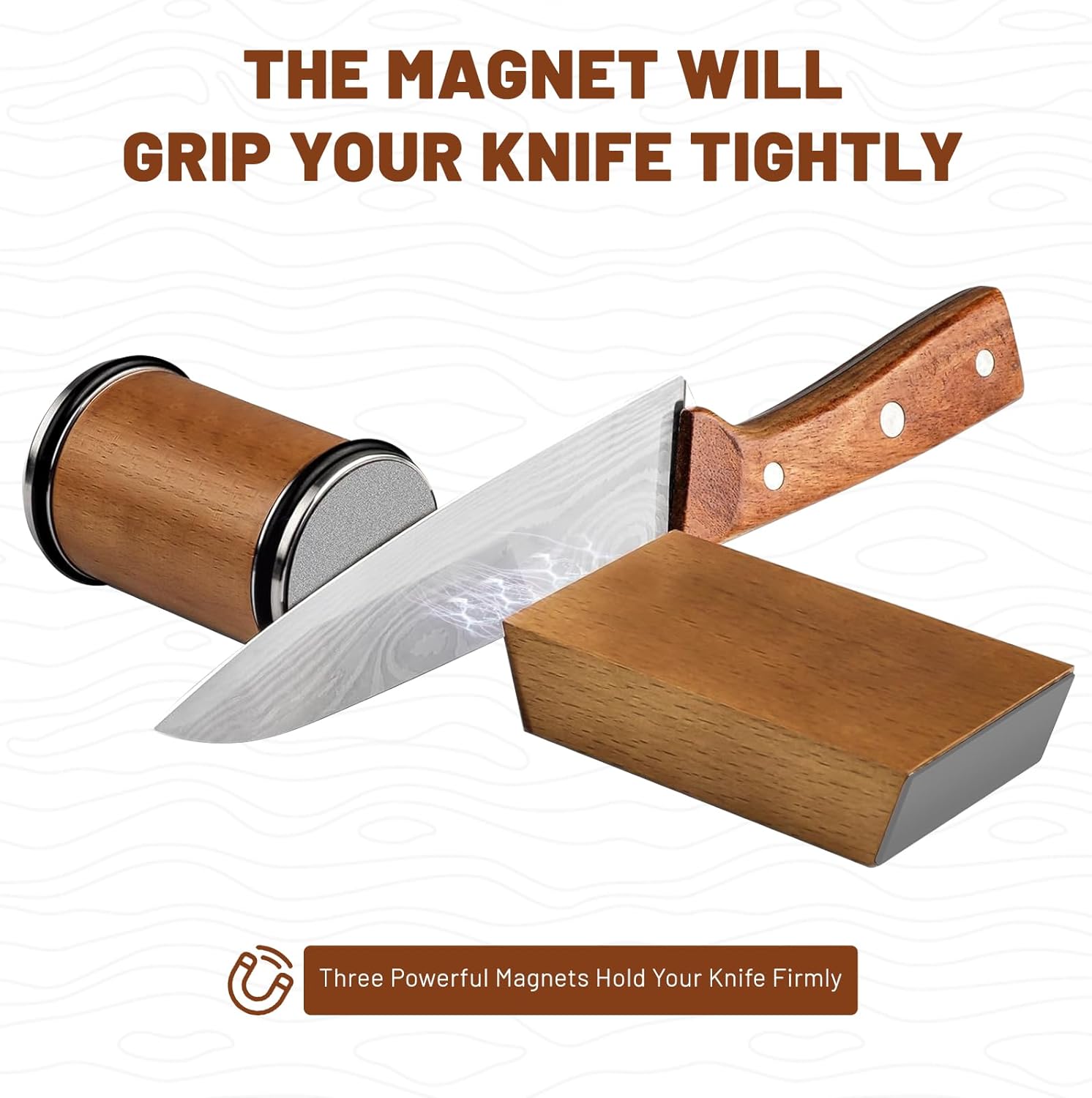 【Magnetic Knife Sharpener】The integrated magnet provides an instant stronghold magnetic force on Knife Sharpener, securely locking your knife in place during sharpening without manual pressure. This innovative design of Knife Sharpener eliminates blade wobble completely, achieving 60% faster sharpening compared to traditional Knife Sharpener while allowing single-handed operation for ultimate convenience.
