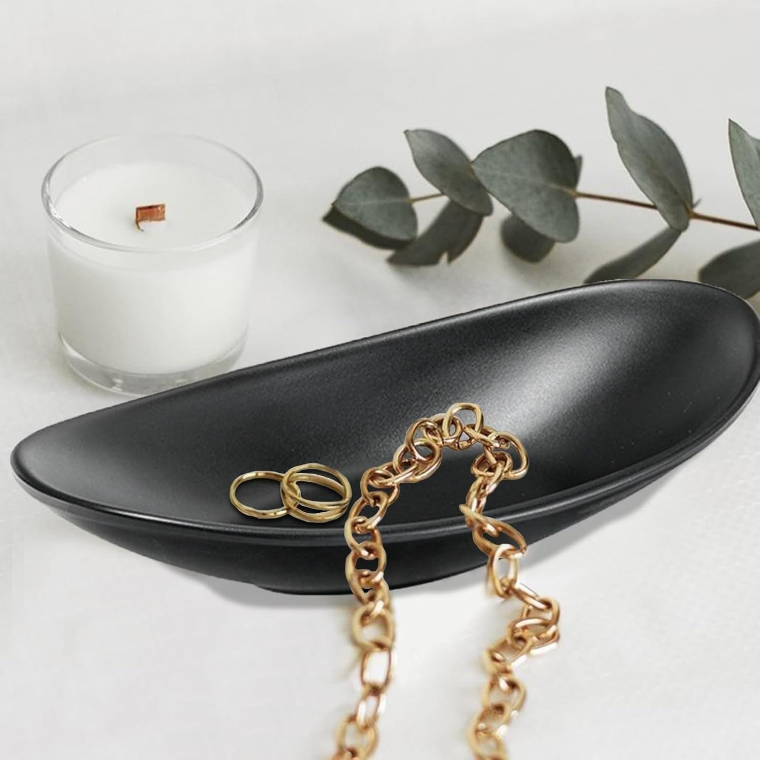 Binoster Black Storage Box Centerpiece Jewellery Tray for Rings and Jewelry Key Ring Organizer Entrance Organizer Dresser Decorative Plate
