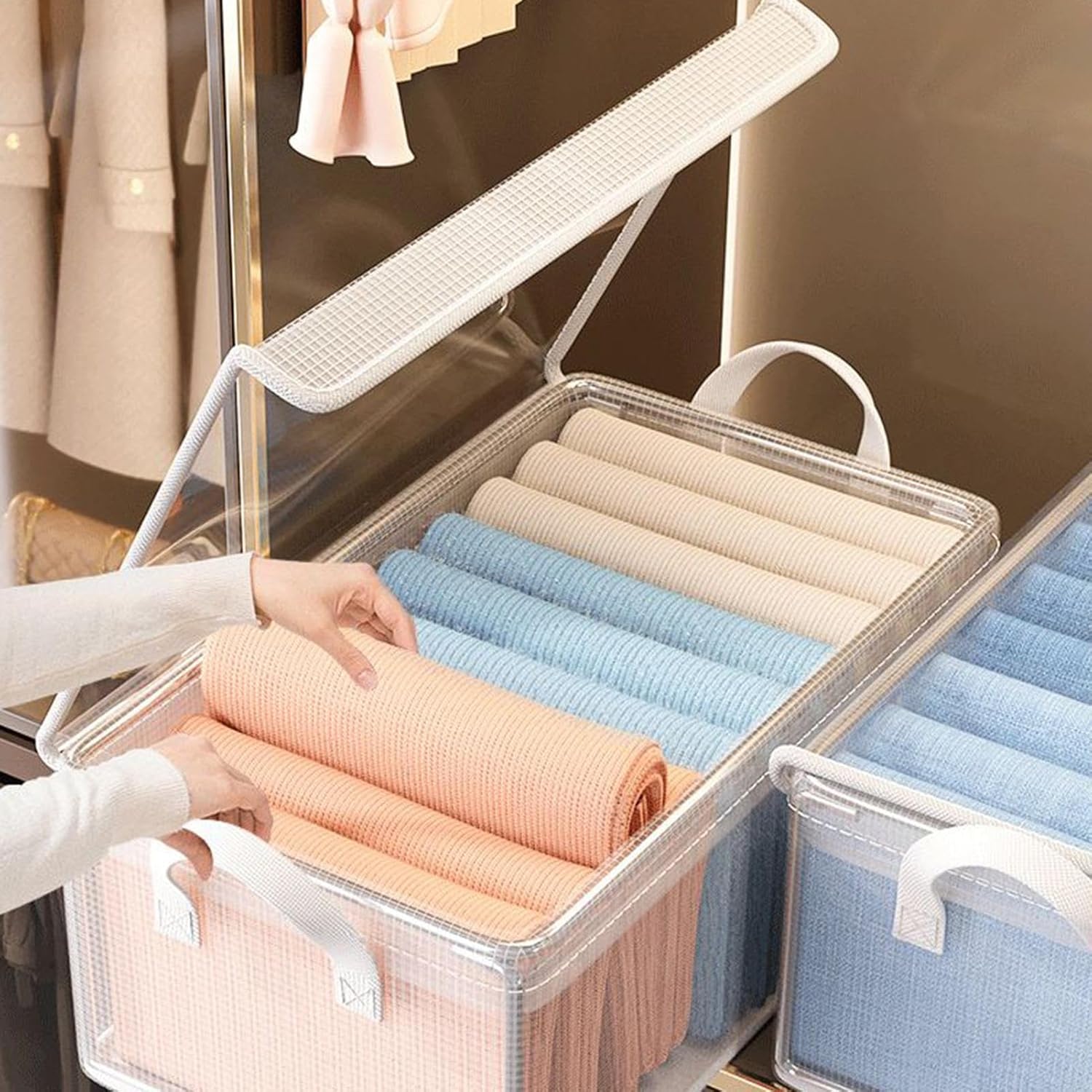 Blanket Organizer - Storage Box | Clear Clothes Storage Organizer | Transparent Space-Saving Stackable Multi-Functional Container Box For Laundry Closet Organization Clothing Moving House Bedroom