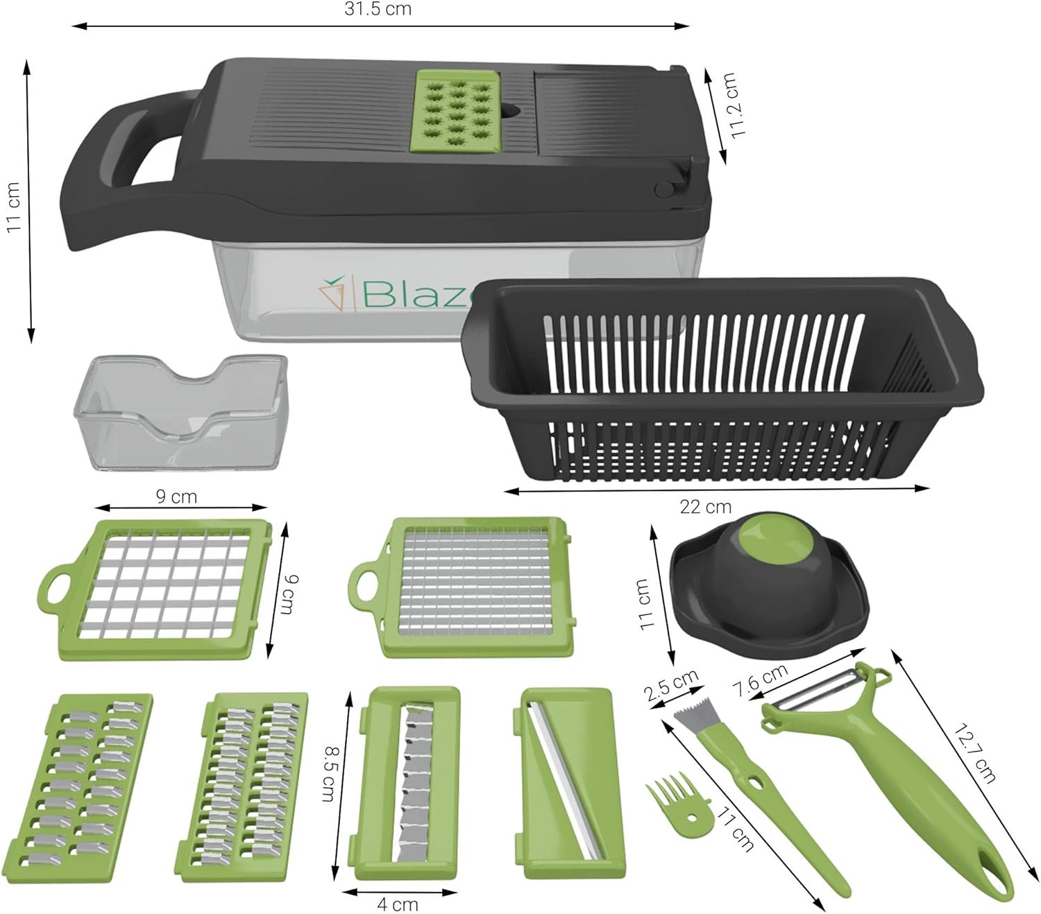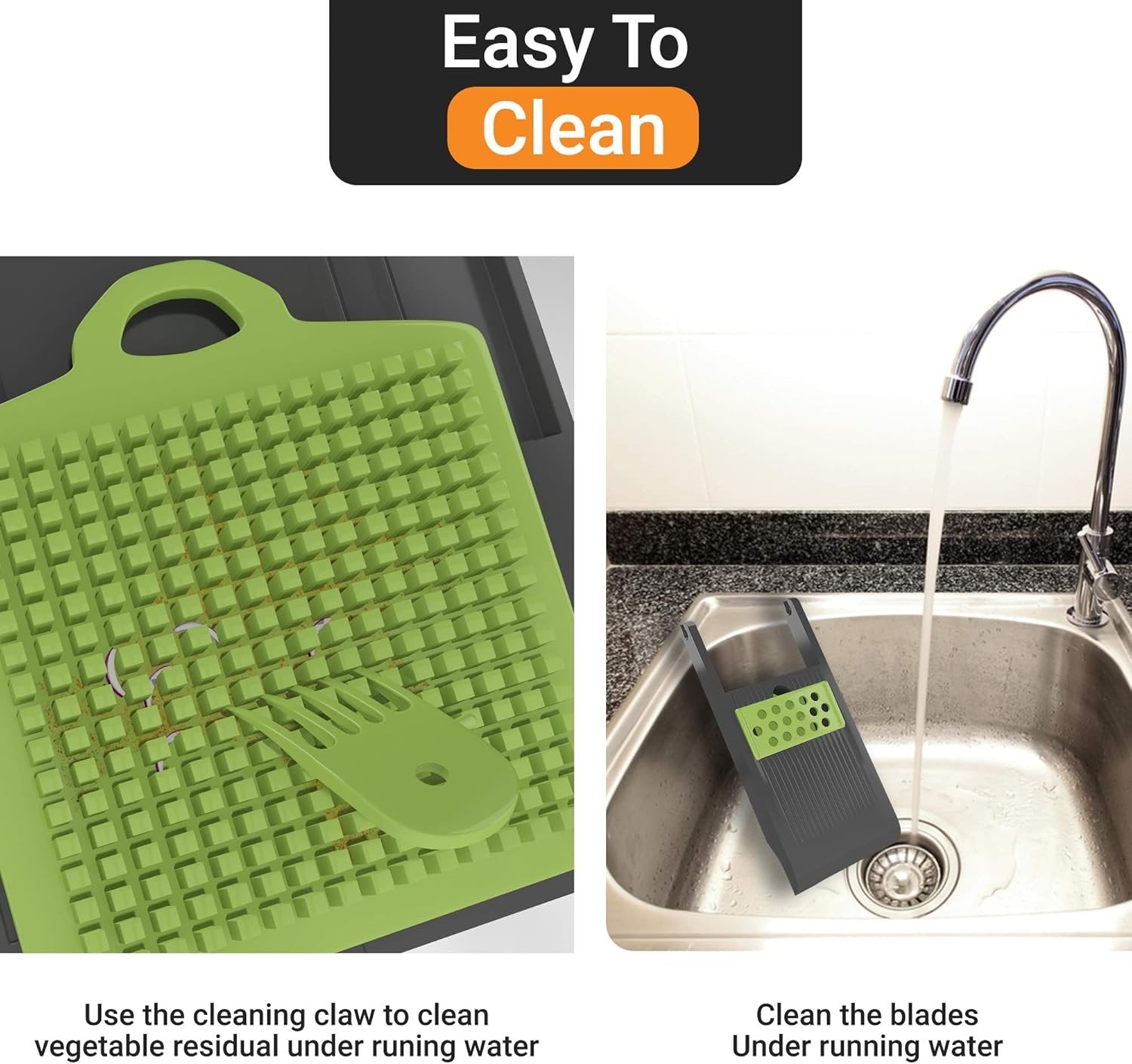 🧅 MULTIFUNCTIONAL 7-BLADE CHOPPER: Our veggie slicer includes 7 interchangeable blades, perfect for slicing, dicing, grating, and shredding. Whether you're making finely chopped onions, vibrant salads, or garnishing your favorite dish, these versatile blades handle it all. 💎 PREMIUM QUALITY & DURABILITY: The vegetable dicer features high-quality 420 stainless steel blades and food-grade, BPA-free materials, ensuring both safety and durability. Whether slicing hard veggies or grating cheese, its sturdy design handles it all without cracking or breaking. 🛡️ SMART DESIGN FOR EVERYDAY KITCHENS: Our veggie chopper with container and lid is designed with convenience in mind. It includes a spacious container and a drain basket for easy washing and draining. The anti-slip base provides stability, ensuring safe and easy chopping. 🧼 SAFE & EASY TO USE: Safety is a top priority with our vegetables chopper. It features a hand guard for protection during use and includes a brush and claw for easy, thorough cleaning. With these thoughtful additions, you can chop and clean up with confidence. 📩 COMMITTED TO YOUR HAPPINESS: Your satisfaction is our priority. Our customer support team is available to help you with any issues or questions regarding your vegtable chopper. We are committed to ensuring that our products meet the highest standards and that you have a seamless experience from purchase to use.