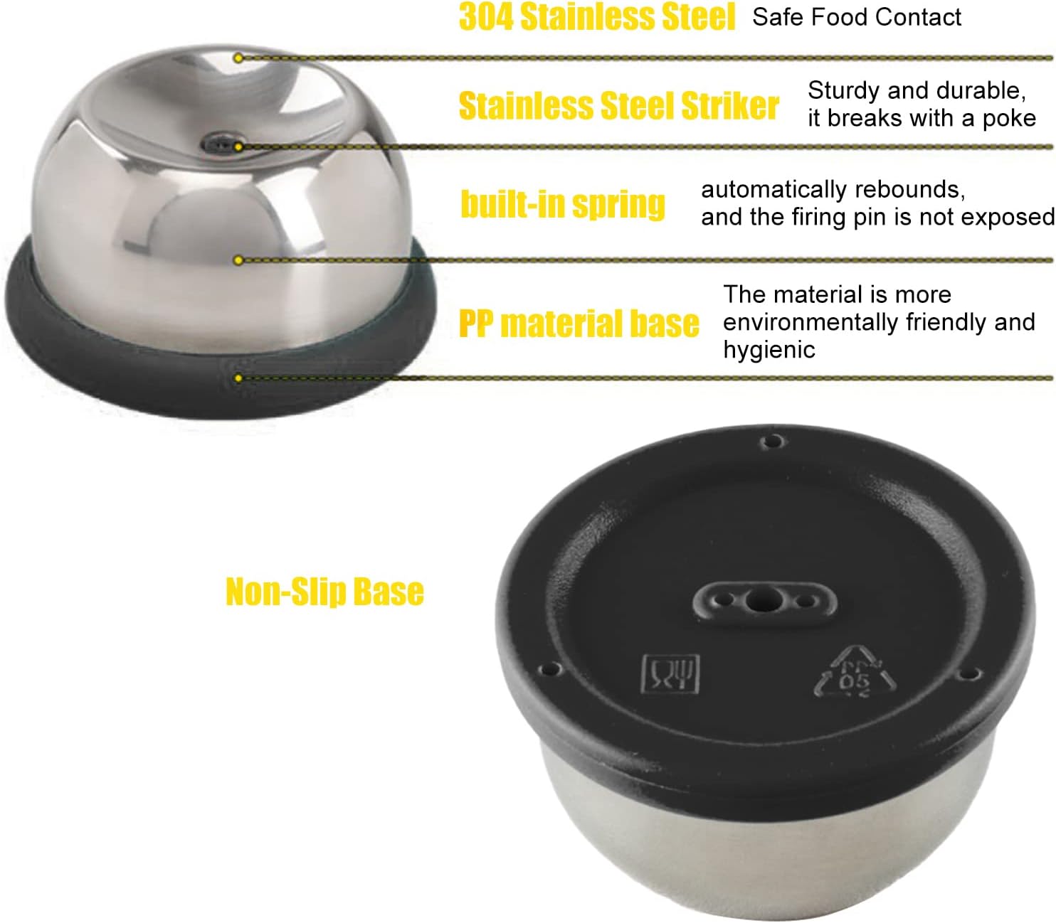 ↷Punching Eggs Made Easy: This egg hole puncher allows you to a small hole in the eggshell before poaching eggs. This helps prevent cracking during boiling and makes peeling easier after cooking. You can enjoy a whole egg with less waste and trouble. ↷Creative Egg Cooker: This egg hole puncher lets you create various egg-shaped dishes. It makes cooking a whole egg simple and fast, and allows you to peel egg shells effortlessly. ↷Convenient to pierce holes: This tool can clearly visible small holes in eggs or duck eggs that are easy to use and won't make any egg whites spill out. You can use it to pierce any eggs you want. ↷Solid and Easy to Clean: This egg hole puncher is composed of high-quality PP material and 304 stainless steel egg tray, which are tough and stable. It is easy to clean and can keep its performance for a long time. You can use it to prepare perfect eggs every time. ↷Easy to Use: This egg hole puncher is a simple and effective tool to make perfect boiled eggs. All you need to do is place the wide end of the raw egg on top of the puncher, gently press the egg down vertically until you hear a click, and then hold the egg gently to complete the .