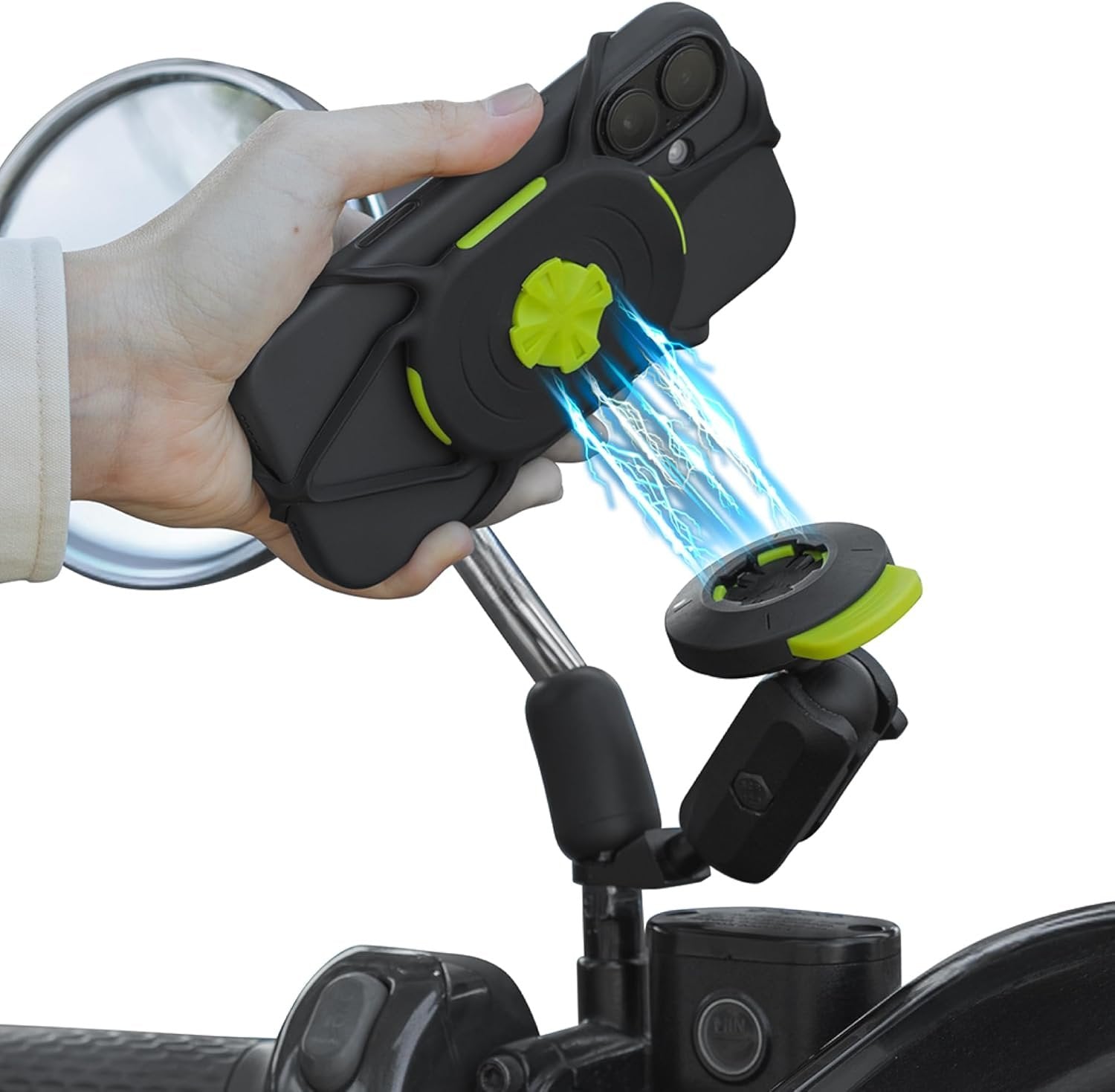 BONE Moto Tie Connect Kit 3, Magnetic Motorcycle Phone Mount, Detachable & 360° Rotatable with Shock-Absorbing Design, Scooter Phone Holder for Most Smartphones (Rearview Mirror)