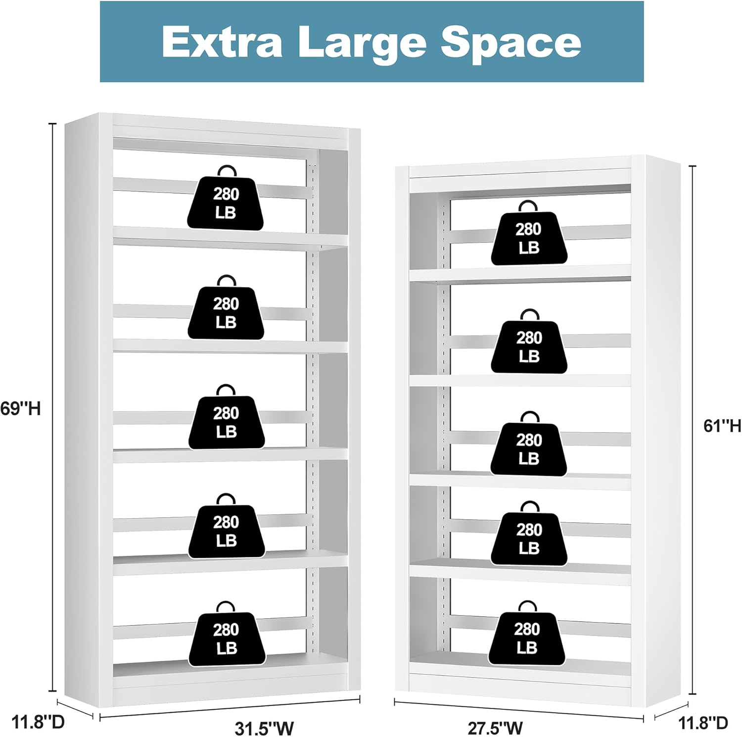 Bookshelf, 5-Tier Sturdy Bookcase, Adjustable Book Shelf, Large Capacity per Shelf, Modern Book Shelf for Living Room, Home Office, Garage, Ideal for Home Organization & Stylish Upgrades