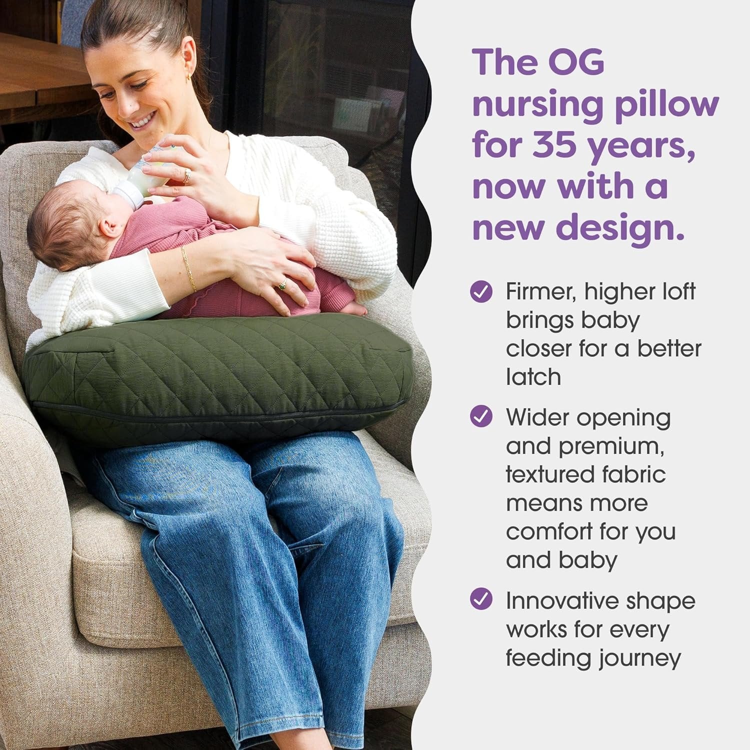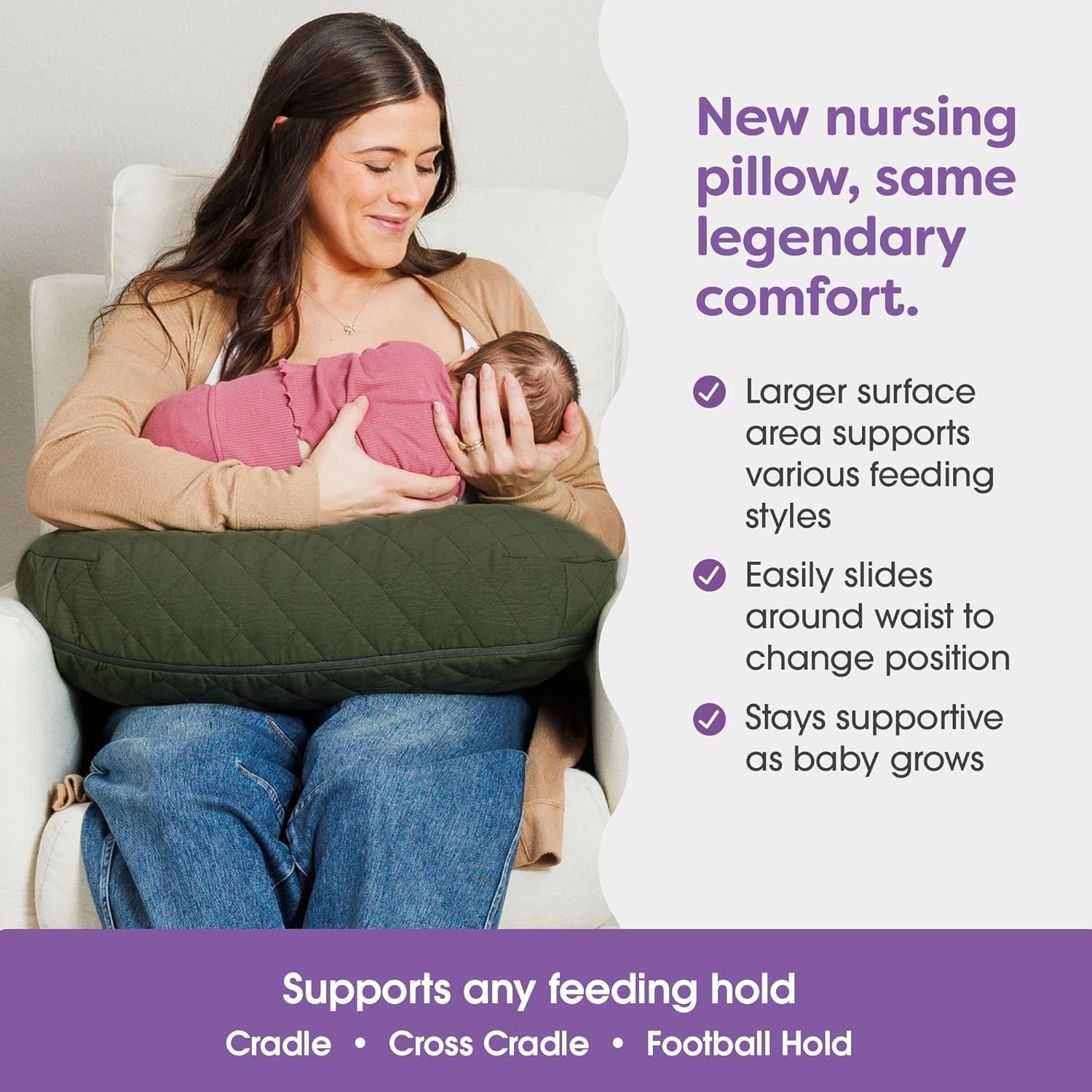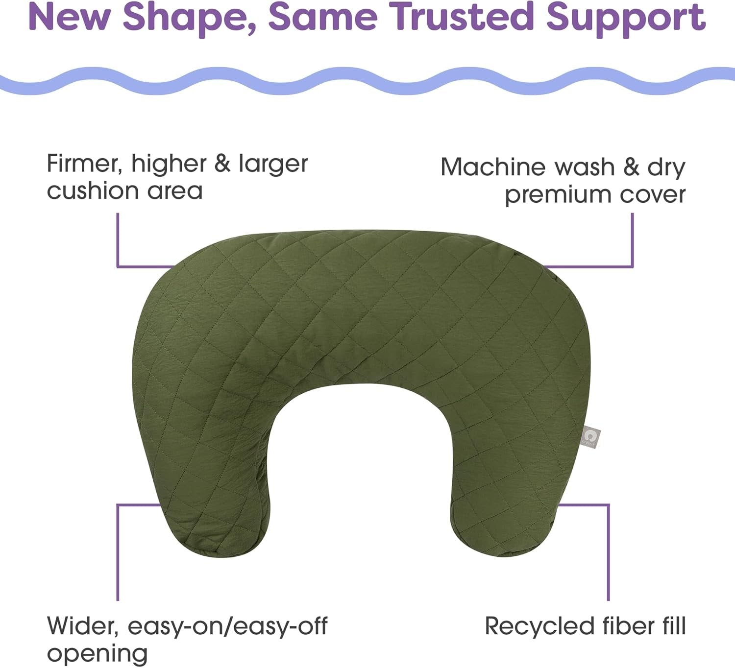 Boppy Nursing Pillow with Luxe Fabric Cover, Quilted Moss, Larger, More Supportive Pillow for Breastfeeding and Bottle Feeding; Firmer and Higher Than Original, w/Premium Cover; JPMA Certified
