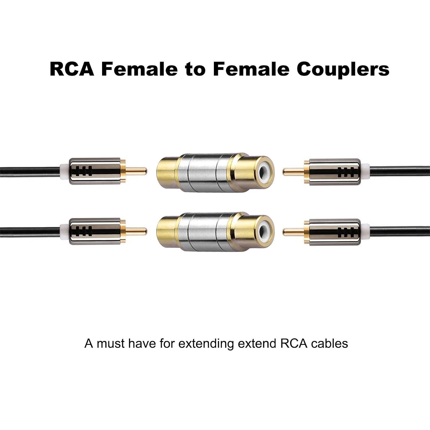 Borsuer 2Pcs RCA Female to Female Coupler Gold Plated Video and Audio RCA Female Adapters Barrel connectors Extend RCA Cables