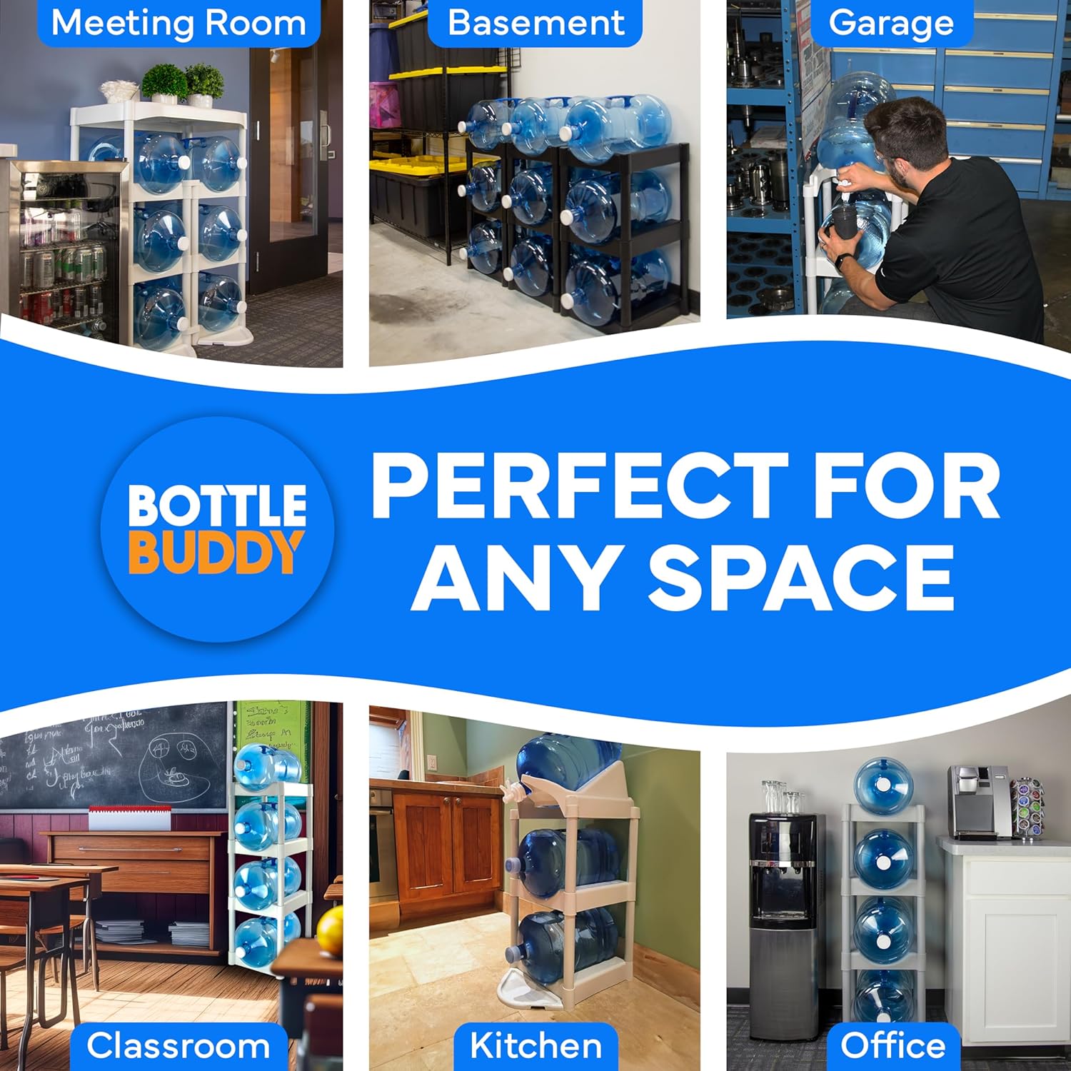 Bottle Buddy Water Bottle Storage Rack 12 Tray - Plastic Water Bottle Organizer for Three to Five Gallon Bottle Storage – Customizable Water Gallon Holder for Easy Storage and Organization