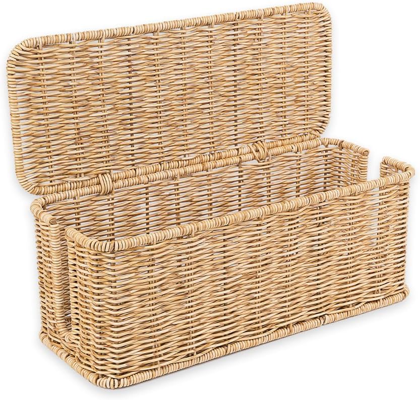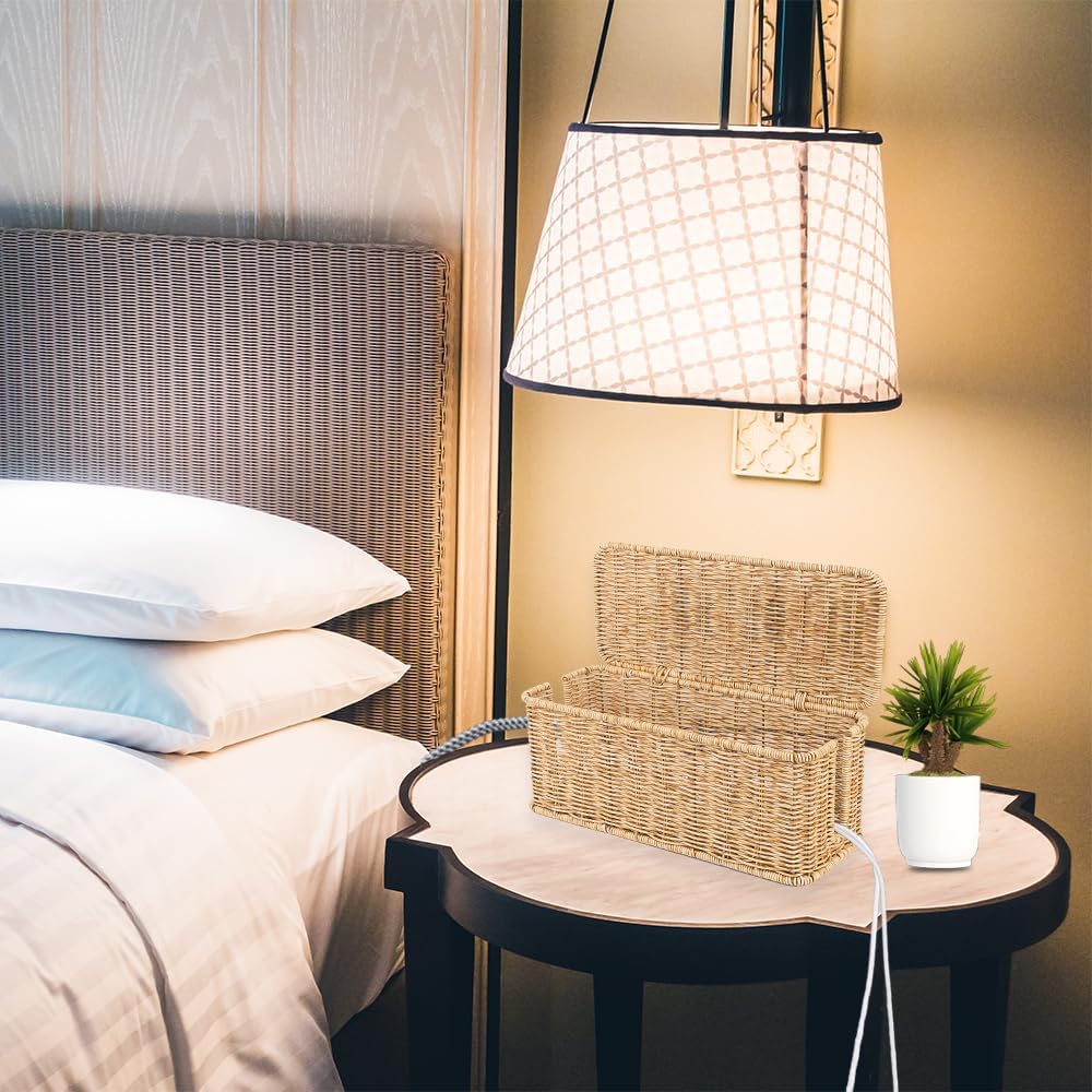 Cable Management Box, Handmade Rattan Cable Organizer, 2 Open Slots Cords Hider Box, Under Desk Cord Organizer for Computer Router USB Hub & Power Strip, Patent Pending, 13" x 5.1" x 5.1", Natural