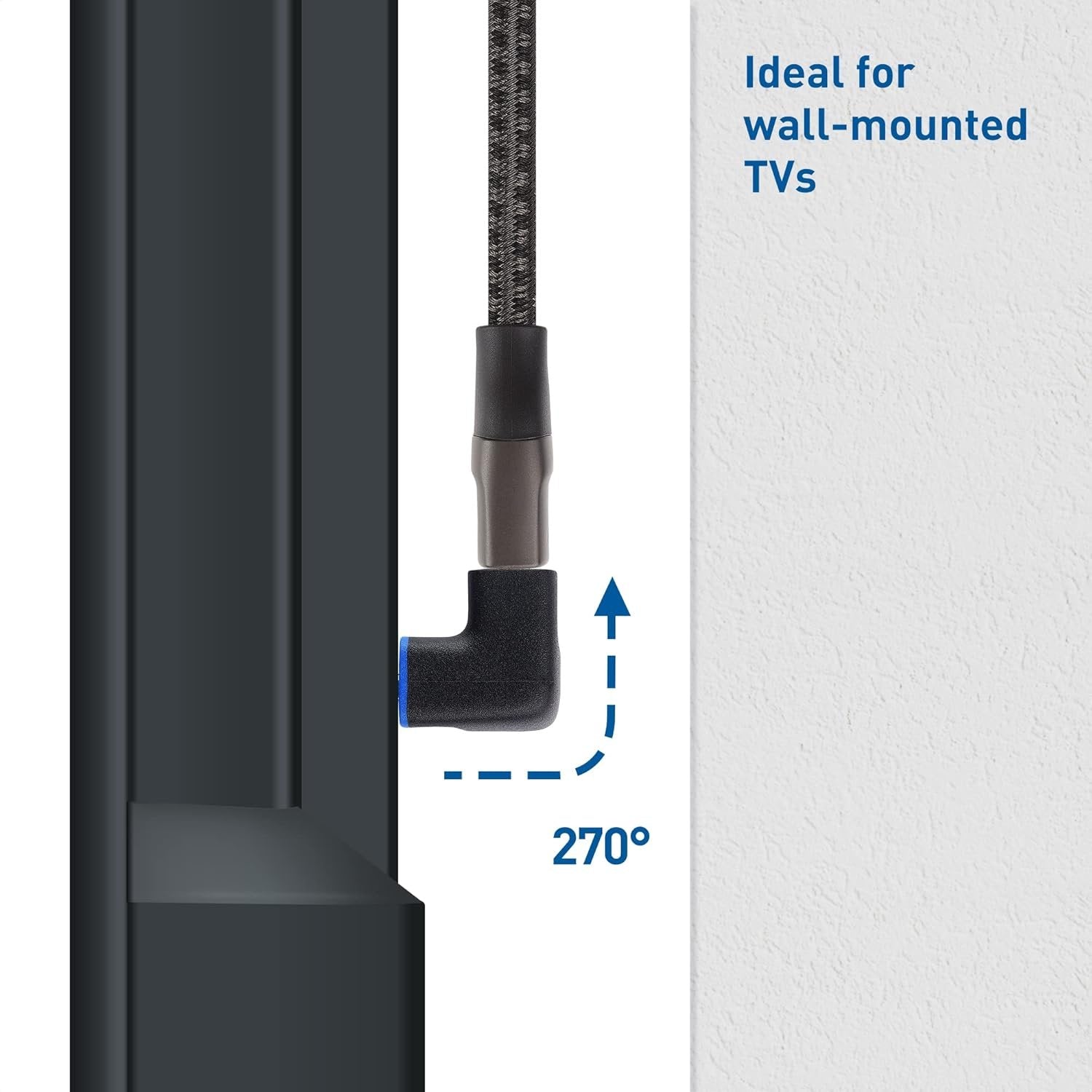 Connect with confidence in hard-to-reach or cramped spaces with this 2-pack of right angle HDMI 2.1 adapters; HDMI 2.1 right angle adapter kit includes 2 270-degree HDMI male to female connectors 270 degree HDMI adapter frees up space behind crowded entertainment centers and equipment racks; Redirect an HDMI cable to avoid hitting the wall behind your TV, or make the HDMI port easier to reach by pointing it upwards or downwards Pass-through 8K HDMI male to HDMI female adapter supports the latest 8K HDMI technology when used with 8K HDMI cables on compatible devices Use the HDMI female to HDMI male adapter to connect devices at a resolution of up to 8K 60Hz / 4K 120Hz with support for advanced features including Auto Low Latency Mode (ALLM) and Variable Refresh Rate (VRR) for gaming, 5.1 and 7.1 surround sound and Dolby TrueHD and Dolby Atmos audio, and HDR as specified in HDMI 2.1 Cost-effective 2-pack includes 2 HDMI adapters, and is perfect for connecting multiple devices to a wall-mounted TV or entertainment center.