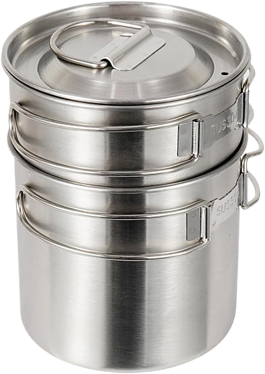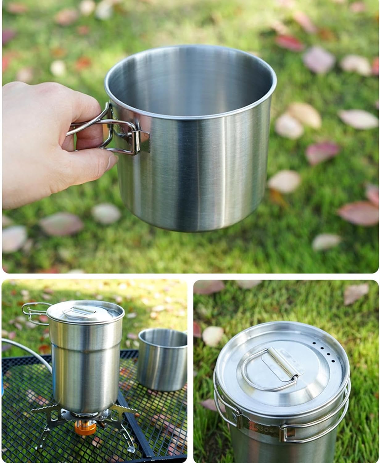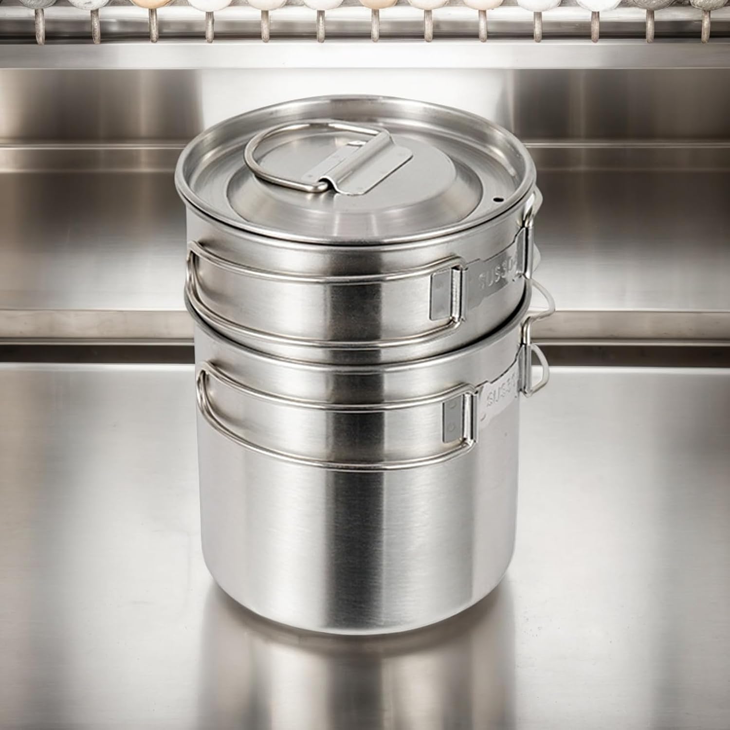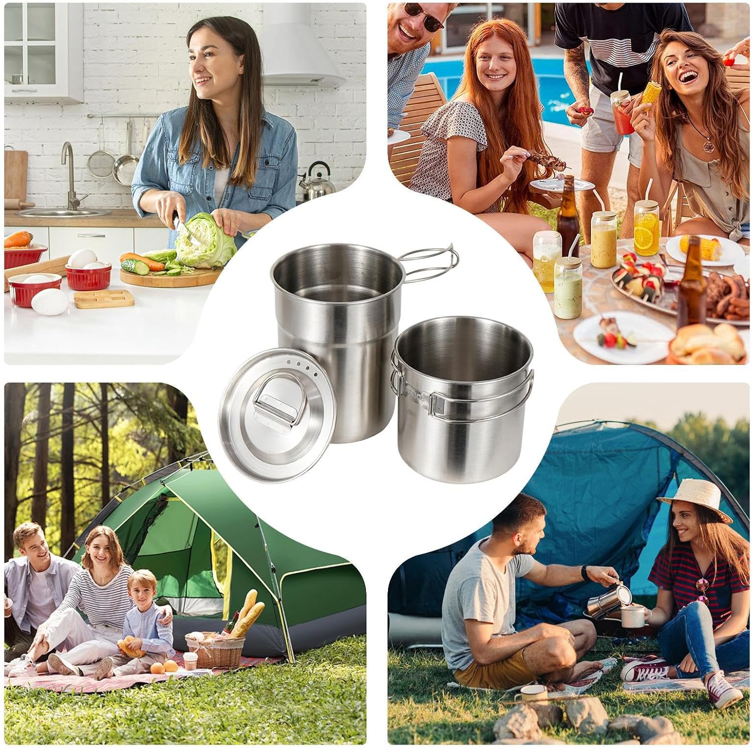 Camping Cookware Set, Outdoor Cooking Gear, Stainless Steel Foldable Tools, Compact Travel Storage, Ideal for Hiking Backpacking Fishing Picnic Adventure Use