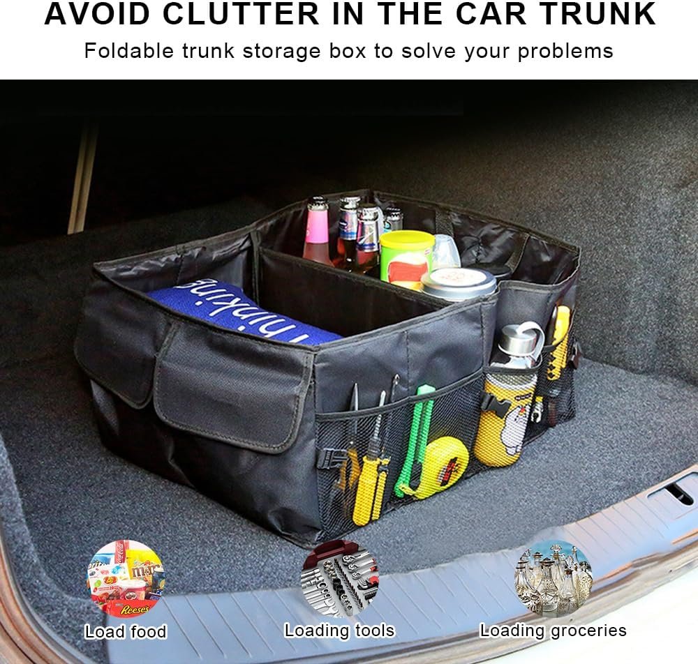 Specific uses for product-Automobiles Special feature-Adjustable Colour-Black Brand-POGEPE Product Information:WIDELY USED:Specially designed to be used in the trunk of your car so that your car won't get dirty and you can keep your car hygienic and in order.THOUGHTFUL DESIGN:The trunk organizer has 3 flexible layers on the inside, 4 mesh pockets and 2 side pockets on the outside.FOLDABLE AND PORTABLE:Simply open it up for use and fold it flat when not in use.LARGE CAPACITY: It can also be used for home, office, boats, trucks and more. Great for storing bottles, children's toys, groceries, tools, etc.Product Specifications:Color: BlackMaterial: Oxford cloth Product specification: 56 x 40 x 26cmFolded size: 40 x 27 x 4 cmPackage includes:1 x Car boot organiser FOLDABLE DESIGN: This car organizer can be folded in half or completely, easy to carry and store. It's very easy to carry, with carrying handles on both sides, easy to pick up or store from the car. You can move the car trunk to the back, front or center seat of your vehicle. MULTIPLE COMPARTMENTS: Car storage organiser, three large interior compartments, four exterior mesh pockets, and two button pockets for storing a variety of items such as sports equipment, emergency tools, cleaning supplies, toiletries, household and automotive tools. DURABLE AND WATERPROOF: The car trunk organizer is made of high quality oxford fabric that can withstand the weight of heavy objects, excellent durability and waterproof, making the car organizer strong, not easy to deform, waterproof and easy to care. MULTIFUNCTIONAL: Car organizers and storage, Keep your car clean and tidy. Save more space for tools and vehicle accessories. COMPATIBLE WITH CAR, TRUNK, SUV, VAN.Widely used for traveling, emergency equipment storage, vehicle storage, home storage and office storage. We always adhere to the philosophy that customer service is paramount. If you have any questions or problems with our products, please feel free to contact us directly through Amazon. We will provide a quick response within 24 hours.